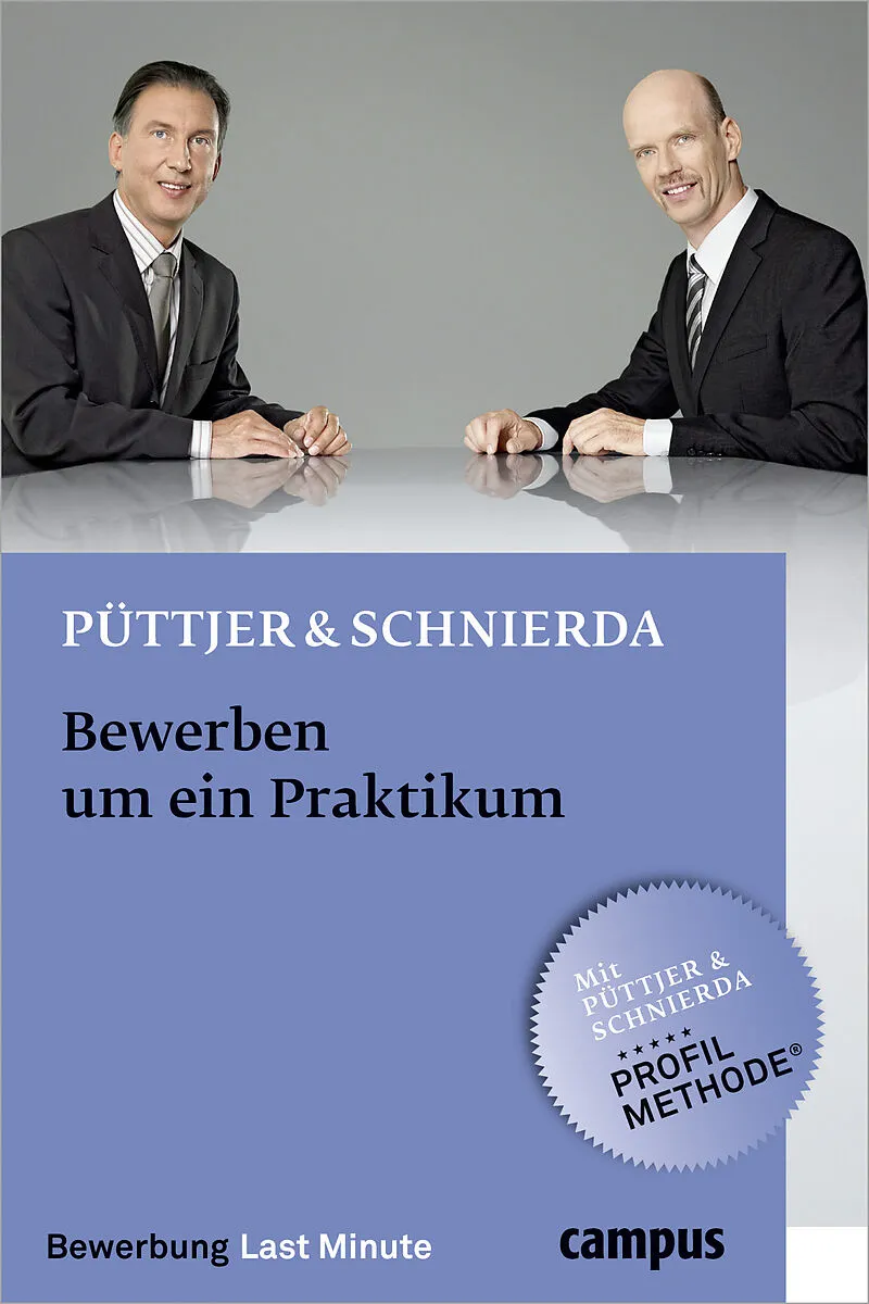 Christian Püttjer und Uwe Schnierda kennen die Wünsche und Hoffnungen, aber auch die Sorgen und Nöte von Bewerberinnen und Bewerbern seit rund 20 Jahren. Ihre umfassenden Erfahrungen aus der Optimierung von Bewerbungsunterlagen, aus Einzelcoachings und aus Seminaren bringen sie in ihre praxisnahen Ratgeber ein, die exklusiv im Campus Verlag erscheinen. Die konkreten Tipps, die klare Sprache und die motivierende Unterstützung von Püttjer & Schnierda haben schon über einer Million Leserinnen und Lesern weitergeholfen.