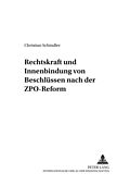 Das ZPO-Reformgesetz vom 27. Juli 2001 regelte das Beschwerdeverfahren neu und führte hierbei eine generelle Befristung des Rechtsbehelfs der Beschwerde ein. Dies hat unmittelbare Auswirkung auf Innenbindung und Rechtskraft zivilprozessualer Beschlüsse, galt b...