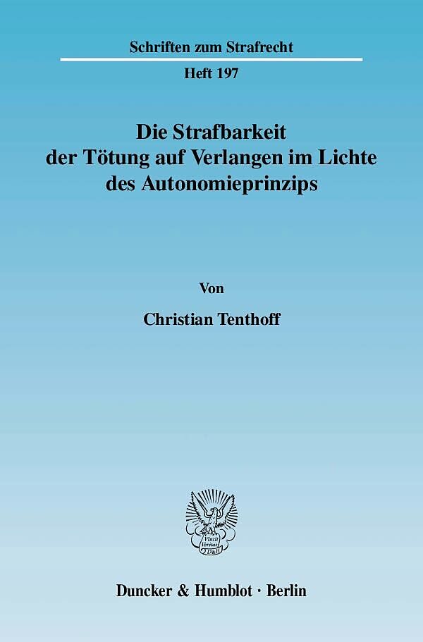 Christian Tenthoff setzt sich mit dem scheinbaren Wertungswiderspruch zwischen der das Grundgesetz prägenden Autonomie des Einzelnen und der Strafbarkeit der Tötung auf Verlangen auseinander. Durch die strafrechtlich vorausgesetzte Unbeachtlichkeit der Einwill...