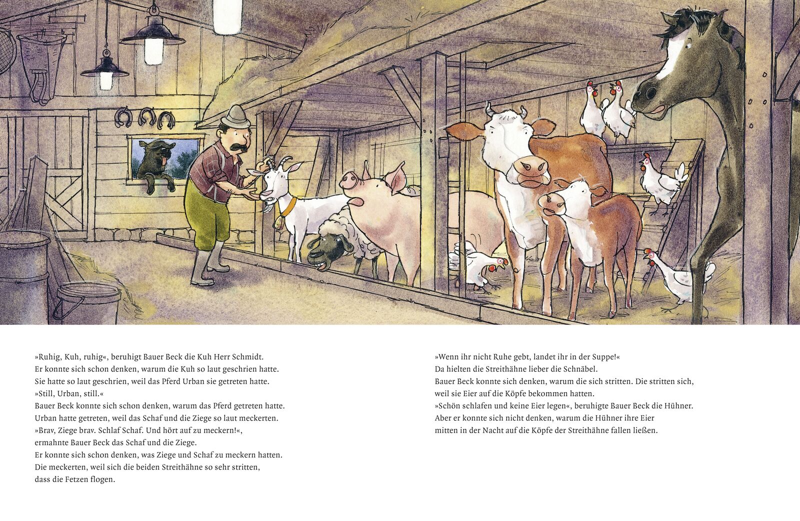 Bauer Beck ist nicht mehr weg, sondern zurück mit einem neuen Bilderbuch-Abenteuer! Bauer Beck braucht seinen Schlaf! Aber seit Tagen schreit nachts die Kuh, weil das Pferd sie getreten hat und das Schaf und die Ziege meckern, weil die Hühner so laut streiten...