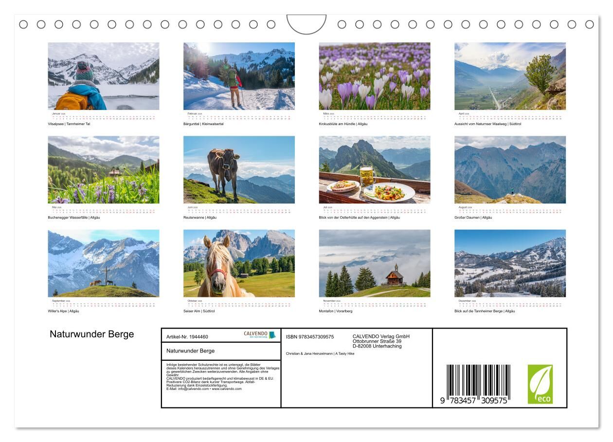 Tauche ein in die majestätische Welt der Berge und lasse dich von atemberaubenden Landschaften inspirieren! Unser Wandkalender Naturwunder Berge präsentiert jeden Monat ein neues, faszinierendes Bergfoto, das die Vielfalt und Pracht der Alpen einfängt. Für Wan...