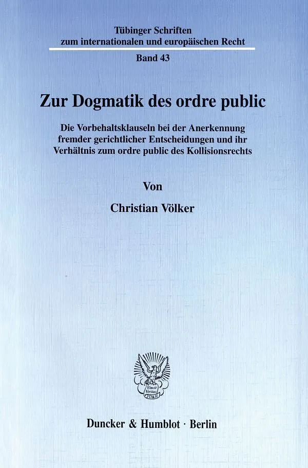 Der Autor untersucht in einem ersten Teil Herkunft, Struktur und Funktion des Vorbehalts der öffentlichen Ordnung im Rahmen der Anerkennung von Entscheidungen fremder staatlicher Gerichte und von in nationalem oder internationalem Kontext ergangenen Schiedsspr...