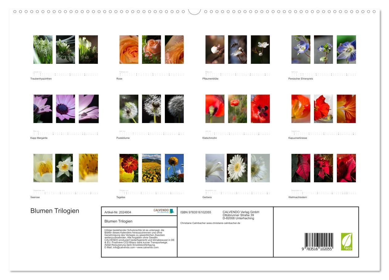 Jeden Monat drei Bilder der selben Blüte. Abwechslungsreich und ganz besonders, ist dieser außergewöhnlich schöne Blumenkalender. Die Bilder sind auch nach Ablauf des Jahres ohne Kalendarium ein idealer Schmuck für jede Wand.