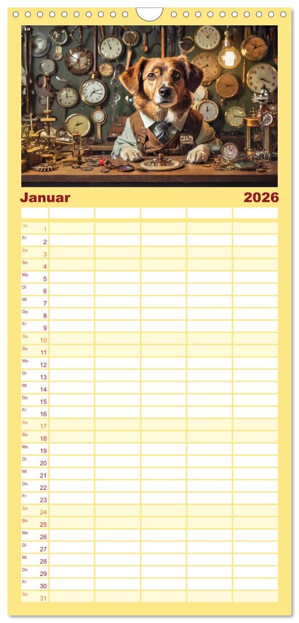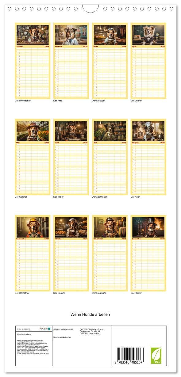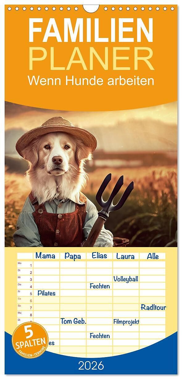 Familienplaner 2026 - Wenn Hunde arbeiten mit 5 Spalten (Wandkalender, 21 x 45 cm) CALVENDO
