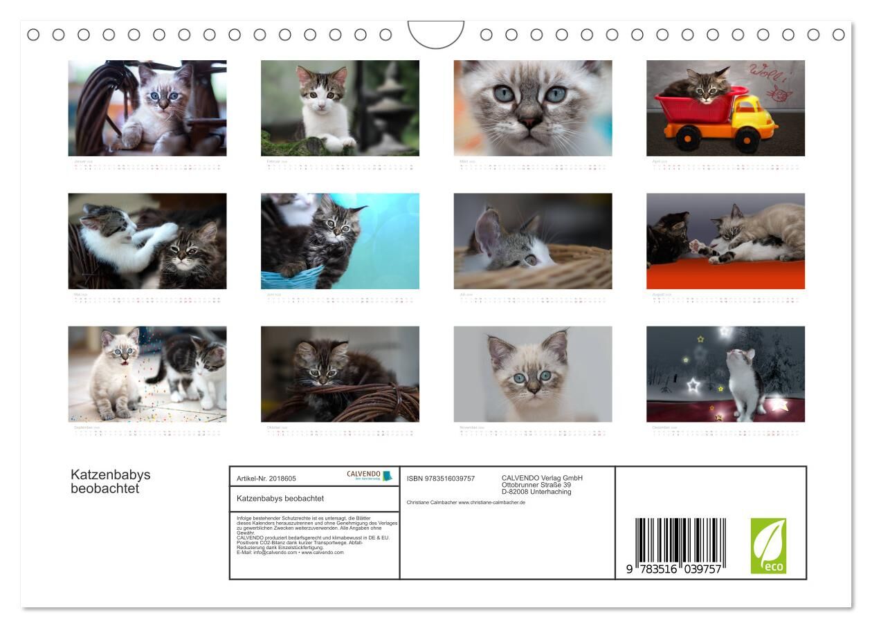Der besondere Kalender für Katzenliebhaber. Drei dieser Zauberhaften Wesen wurden mit der Kamera beobachtet als sie tolpatschig ihre Welt entdeckten. Ein Geschenk für andere und sich selbst, das auch nach Ablauf des Jahres immer noch Freude bereitet. Die Fotos...