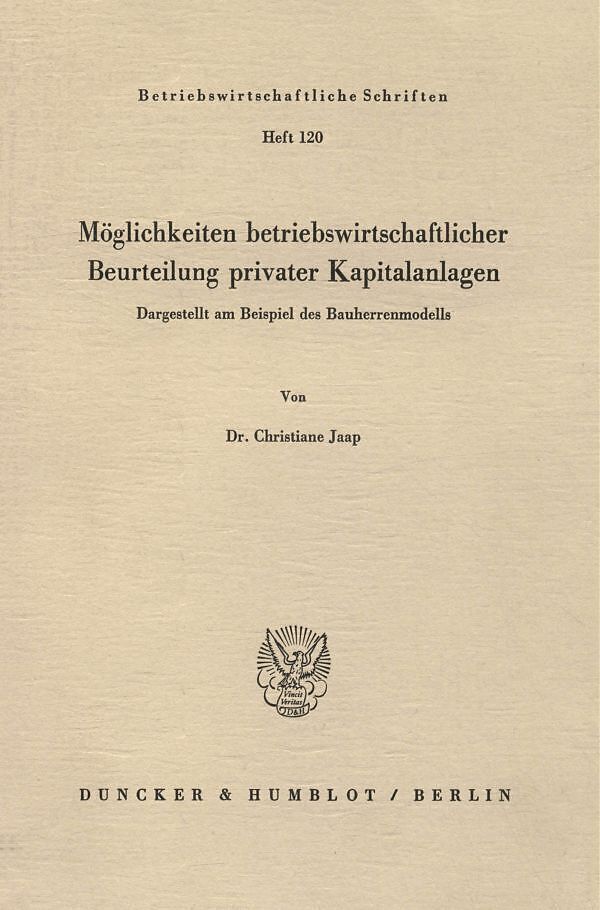 Möglichkeiten betriebswirtschaftlicher Beurteilung privater Kapitalanlagen.