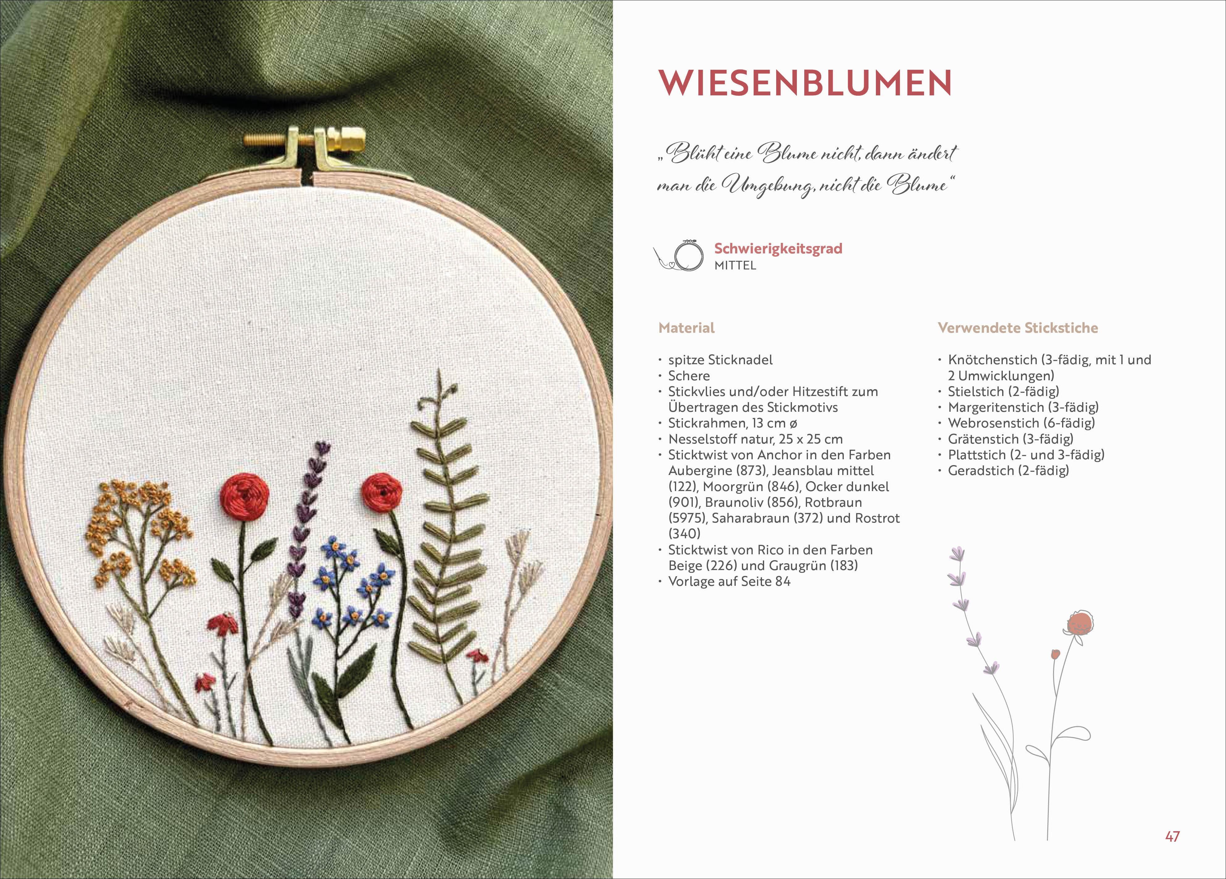 In der Stickerei sind sie ein Evergreen: Blumen- und Pflanzenmotive machen jeden Stickrahmen zum liebevollen Unikat. Ein üppiger Blumenstrauß, ein hübsches Gesteck aus Knospen und Blüten, eine stilvolle Hängepflanze, die sich über ihren Topf schlängelt - mit d...