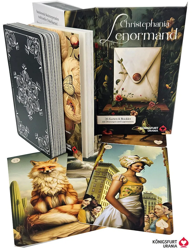 Die wunderschönen Collagen dieser Karten entführen dich in traumähnliche Szenerien mit einem Hauch von nostalgischem Charme. Die Künstlerin und Lenormand-Spezialistin Christephania hat diese zauberhafte Neuinterpretation der klassischen Orakelkarten geschaffen...