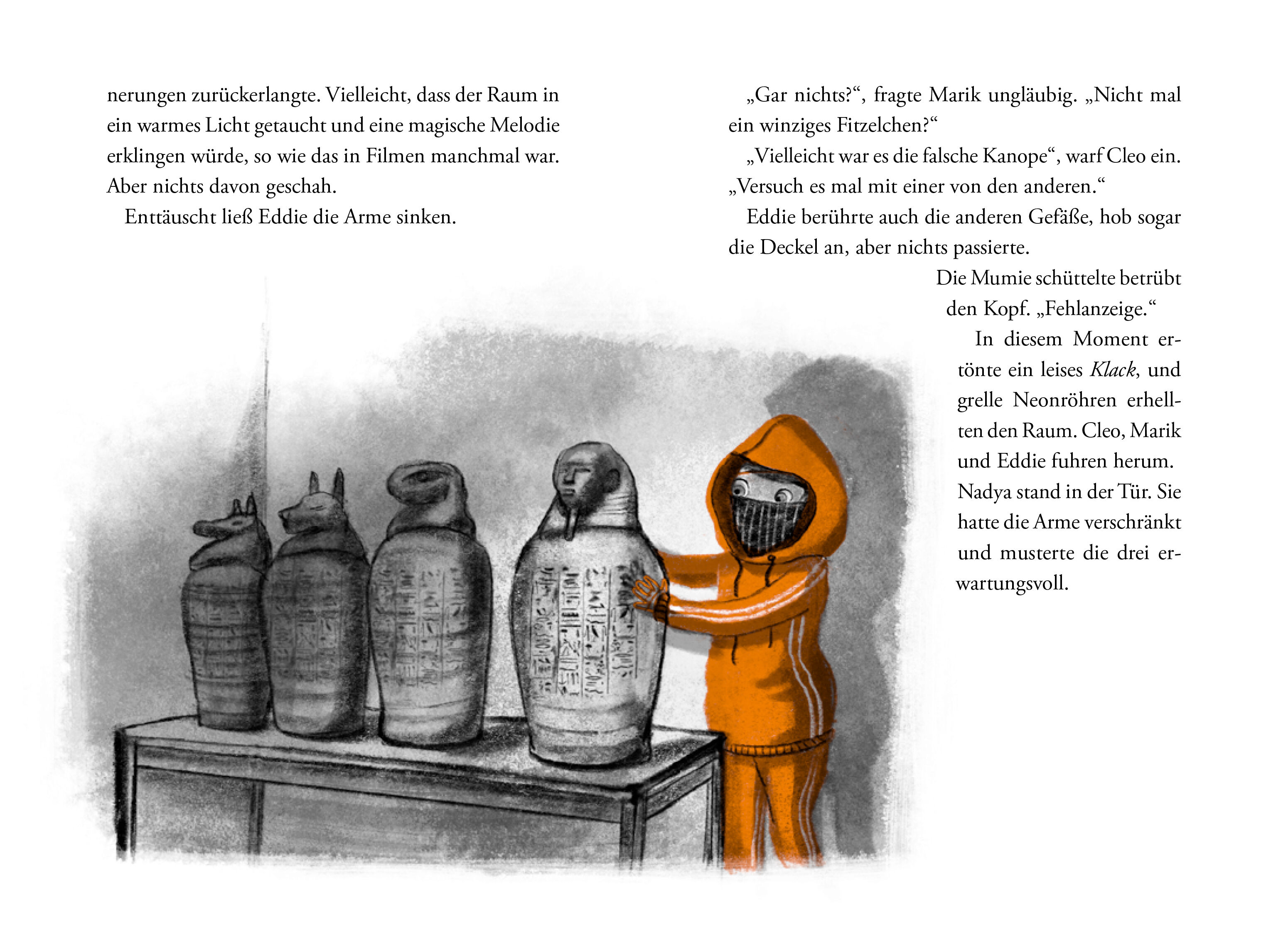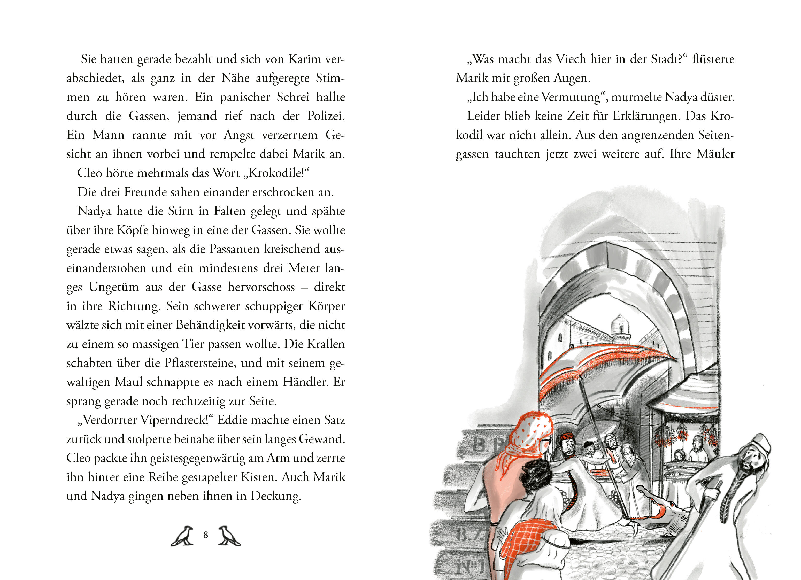 Der Fluch des Krokodils Cleo, Marik und Mumie Eddie haben sich in Kairo eingelebt. Die drei Freunde verbringen jede freie Minute gemeinsam. Doch in letzter Zeit macht Cleo sich Sorgen um Eddie: Er zeichnet wie verrückt und wirkt dabei völlig abwesend. Gleichz...
