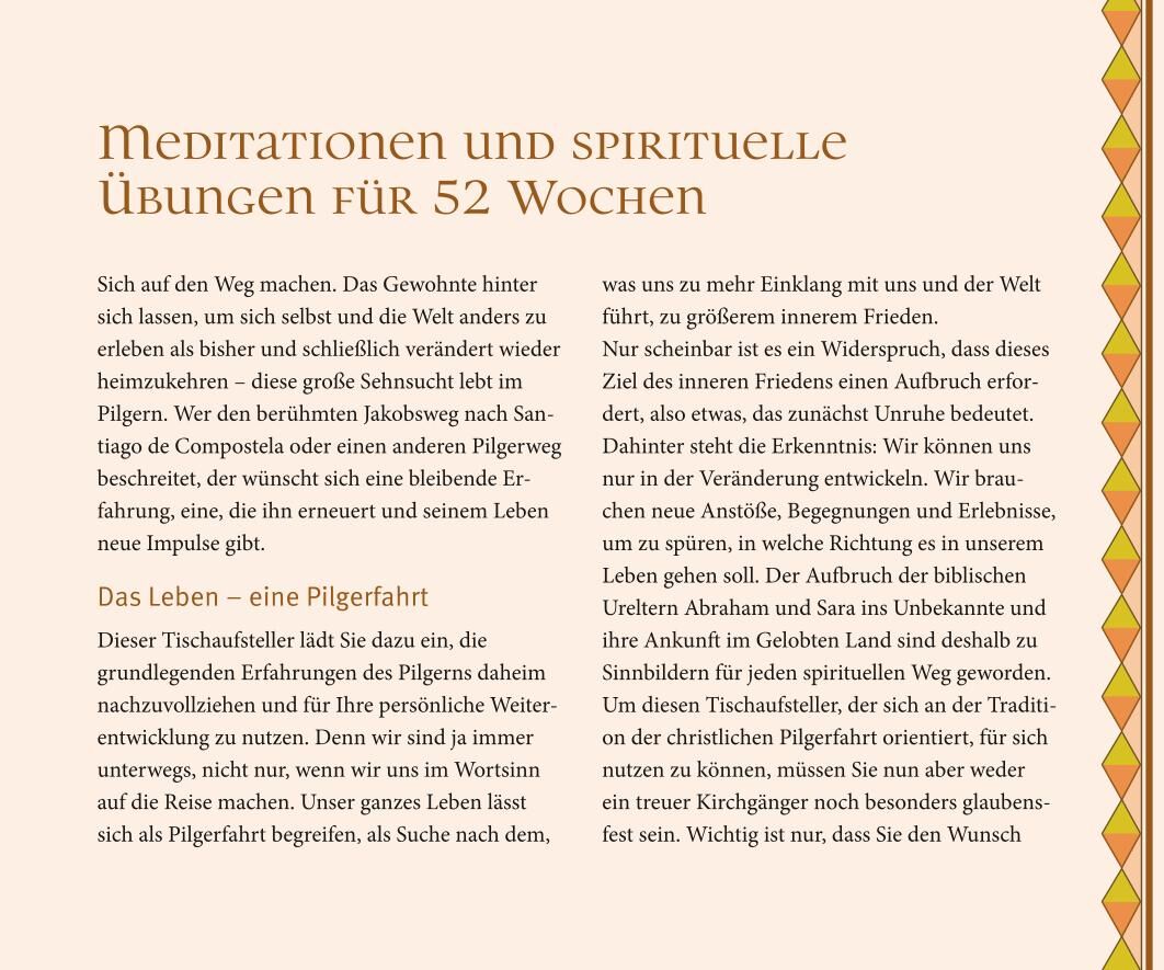 Ruhe, Entschleunigung und innerer Frieden der spirituelle Begleiter für zu Hause Seit Jahrhunderten übt der Jakobsweg eine besondere Magie aus, seit einigen Jahren erlebt er eine ungeahnte Renaissance: Er steht für den äußeren Weg des Pilgerns ebenso wie für d...