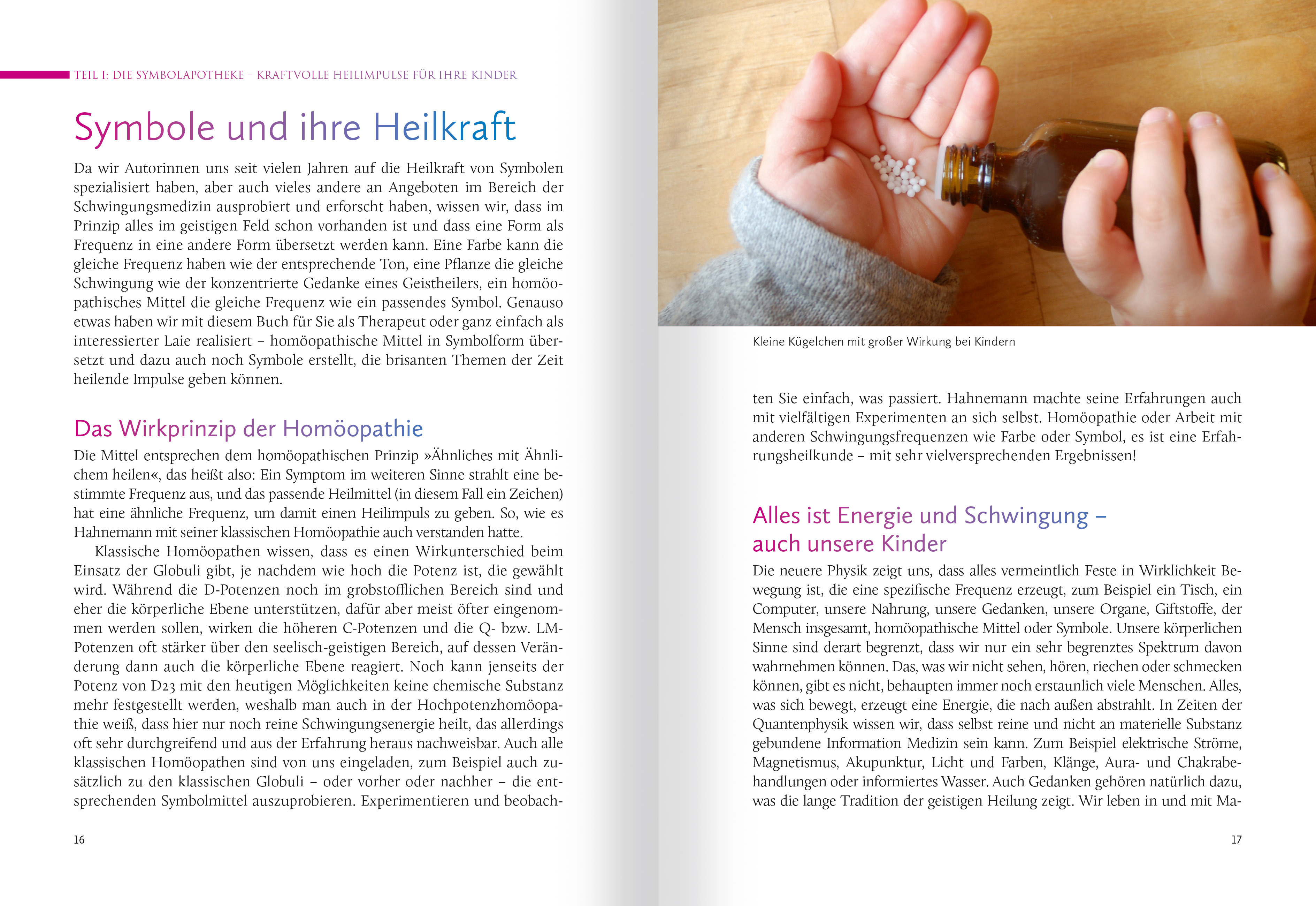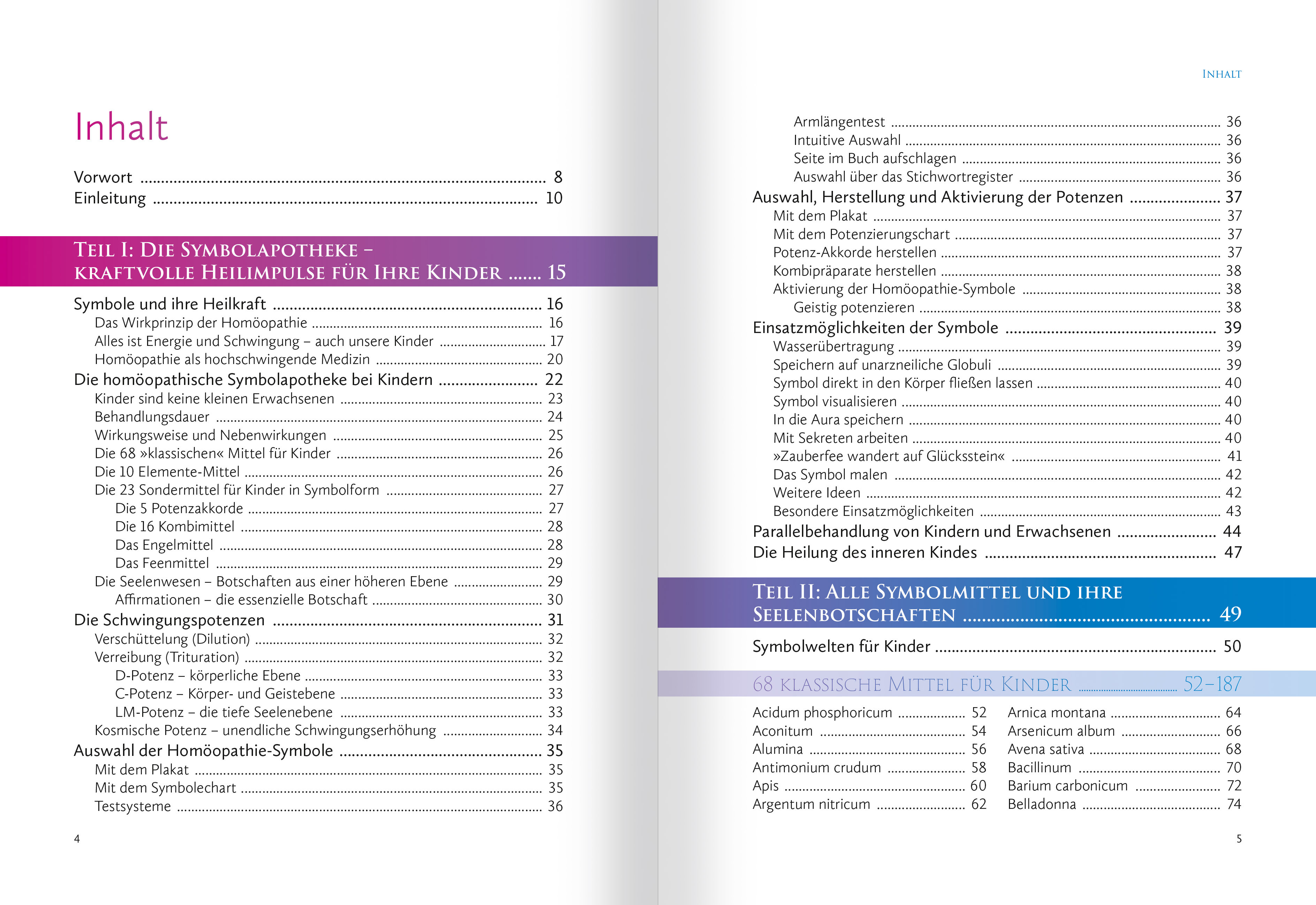 VORWORT Liebe Leserin, lieber Leser, liebe Mütter und Väter, liebe Kinder! Wir freuen uns sehr, dass wir mit den Büchern und Kartensets "Homöopathische Symbolapotheke" einen Bestseller im Bereich der Alternativheilkunde auf den Markt bringen konnten, den viele Nutzer mit Begeisterung und viel Engagement in die Praxis umgesetzt haben. Aus dem regen Austausch in verschiedenen Gruppen wurde schnell deutlich, wie häufig diese sanfte, aber wirkungsvolle Medizin für Kinder angewandt und wie gern sie von den Eltern ausprobiert wird. Vielen Dank an dieser Stelle an jeden Einzelnen von euch, dass ihr uns teilhaben lasst an euren Erfahrungen! Das Thema Energiemedizin und Heilen mit Symbolen geht weit über den Einsatz für körperliche Symptome und Anliegen hinaus. Die Kombination des über zweihundert Jahre alten Erfahrungsschatzes der klassischen Homöopathie Samuel Hahnemanns mit den Bedürfnissen der neuen Zeit und ganz neuen Anliegen wie Störfrequenzen, Hyperaktivität oder überbordender Leistungsdruck in der schulischen Welt hat uns gezeigt, wie notwendig ein neues Herangehen an die Homöopathie gerade für Kinder und Jugendliche ist. Dass die Methode funktioniert und gute Ergebnisse bringt, wissen wir. Und wir freuen uns sehr auf weitere Erfahrungsberichte vonseiten der Eltern und allen, die mit Kindern zu tun haben. In diesem dritten Band der homöopathischen Symbolapotheke haben wir noch einmal etliche gängige und bekannte homöopathische Mittel aufgegriffen, die für Kinder besonders wichtig sind, wie zum Beispiel Belladonna, Calcium carbonicum oder Pulsatilla. Das Seelenwesen ist jedoch speziell auf die Kinderseelen zugeschnitten, es ist "ihre" Botschaft. Im Kontakt mit dem Wesen der Kinder haben wir von der geistigen Welt erfahren, welche Aspekte hier besonders wichtig sind und was kommuniziert werden möchte. Weil jedoch Kinder und Eltern in Wirklichkeit nicht voneinander getrennt sind, sondern eher eine energetische Gemeinschaft bilden, können wir davon ausgehen, dass der Erwachsene, der etwas für "sein" Kind tun möchte, ebenso von der Botschaft profitieren wird. Dazu gibt es viele neue interessante Mittel wie Chocolate, Vanilla, Milchmittel wie Lac delphinum oder Musca, die Stubenfliege (mit ihrer Hyperaktivität). Wir haben diese Symbolmittel für die heutige Zeit als sehr wertvoll erfahren. In diesem Band möchten wir nun aber noch mehr Möglichkeiten anbieten, mit Homöopathiesymbolen in Zusammenhang mit Kinderthemen dieser Zeit zu arbeiten. So haben wir auch hier wie in den ersten beiden Bänden spezielle Mittel zusammengestellt, die sicherlich überraschende Ergebnisse und Einblicke gewähren werden.(...) Wir wissen, dass Kinder es nicht gerade leicht haben in dieser Zeit zunehmender Kontrolle und vermehrten Leistungsdrucks, dazu einer Zeit der Vereinzelung, des überhandnehmenden Medienkonsums und zunehmenden Verlusts von Freundschaften und natürlicher Geborgenheit. Unsere 5 "Durchgreifer"-Potenzakkorde sollen einen intensiven Impuls geben, die folgenden Themen zu heilen: alles, was mit Überaktivität und Hyperaktivität, Folgen von Impfungen, Entfremdung von sich selbst und anderen, Umgang mit Gefühlen, Sehnsucht und Verlust von Geborgenheit und Mutterthemen zu tun hat. Hier benötigt es schnelle und durchgreifende Hilfe, damit die Kinder auch in dieser schnelllebigen Zeit mit sich selbst und mit anderen Menschen Frieden finden können. Auch die 16 neuen Kombimittel sind dazu gemacht, um einerseits uralte archaische Themen wie Ängste zu entkoppeln, damit die Kinder nicht immer wieder darunter leiden müssen. Andererseits greifen auch sie grundlegende Themen auf wie "Wachstum", "Abwehrkräfte stärken", "Fähigkeit zu Geborgenheit erleben können" und "Glücklichsein". Wir wünschen allen Anwendern und natürlich allen Kindern ganz viel Freude und guten Erfolg mit diesem Buch! Christina Baumann und Roswitha Stark im Juni 2021