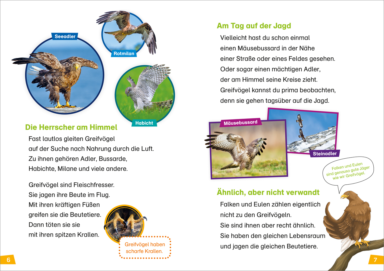 Wie leben Greifvögel und wie jagen sie? Warum haben die Flugkünstler einen nach unten gebogenen Schnabel? Und was ist eine Wendezehe? Fundiertes Sachwissen und staunenswerte Fakten rund um die Könige der Lüfte erhalten Leseeinsteiger in diesem Band der Reihe W...