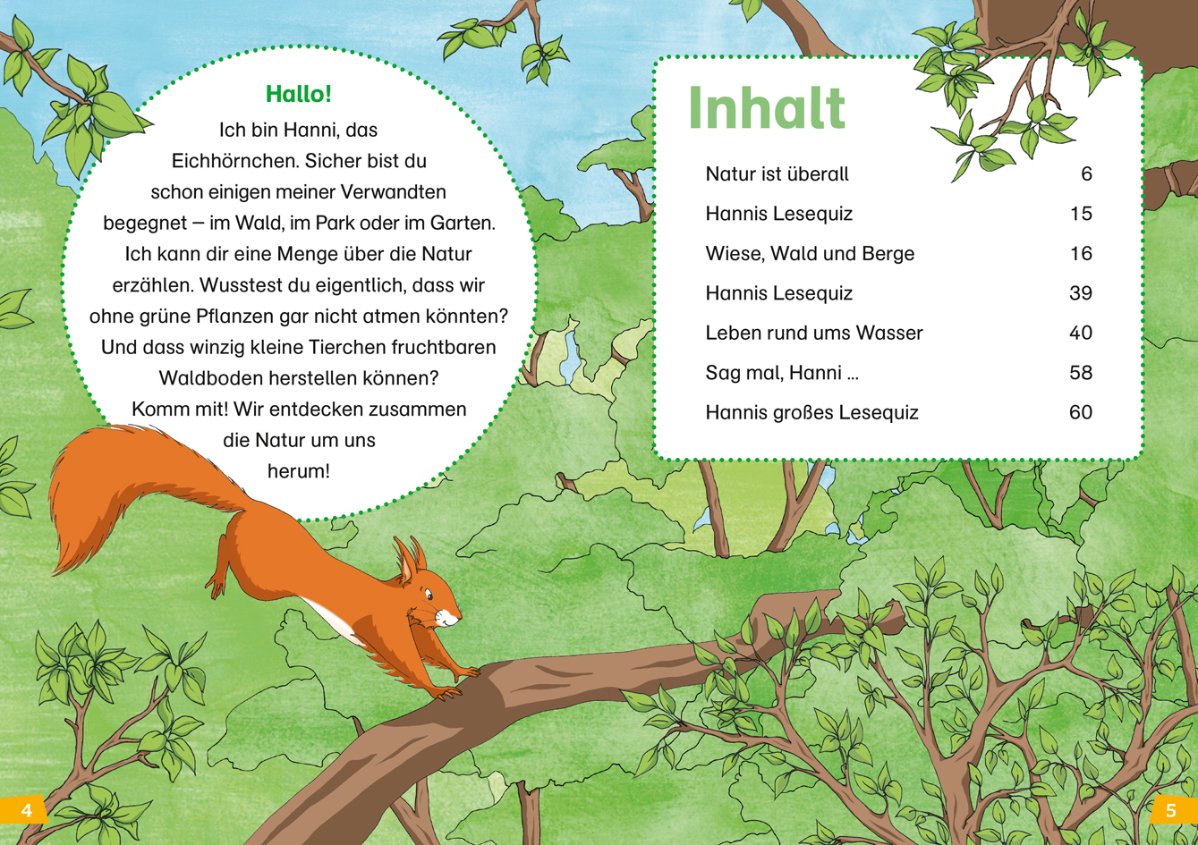 Zur Natur zählt man alle Pflanzen und Tiere: von der kleinsten Ameise bis zum riesig großen Mammutbaum. Aber auch viele andere Dinge gehören zur Natur: Wasser, Steine, Felsen, Berge, die Jahreszeiten, das Wetter und sogar der Mensch. Hanni, das flinke Eichhörn...