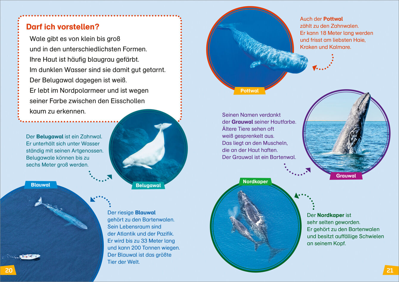 Blauwale sind die größten Säugetiere, Makohaie können bis zu 70 km/h schnell schwimmen und Pottwale tauchen rund 3000 Meter tief für ihre Lieblingsspeise. Diese und viele weitere interessante Fakten und ganz viel spannendes Wissen rund um Wale, Delfine und Hai...