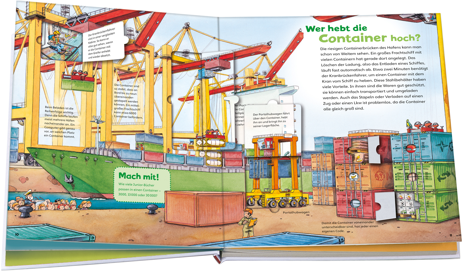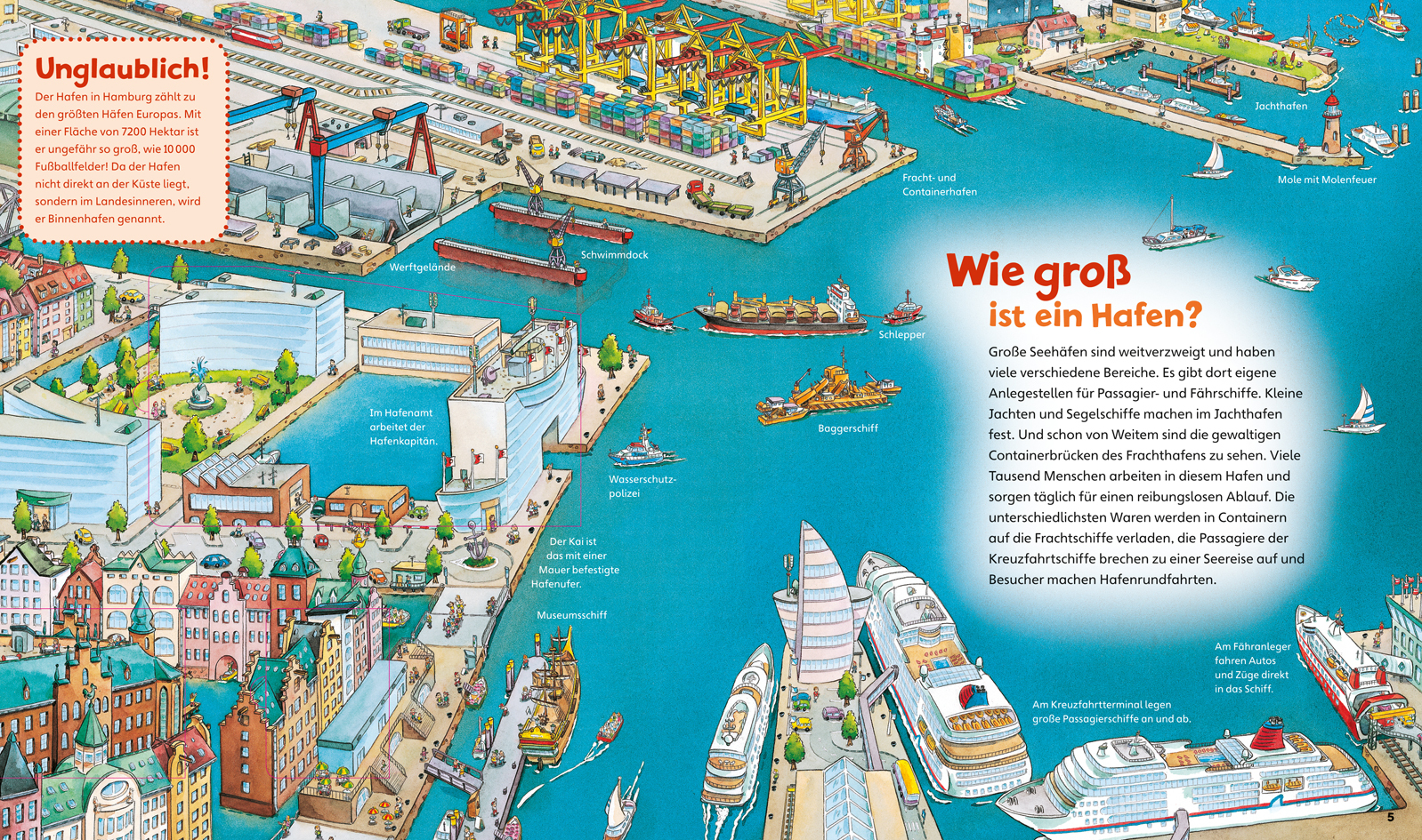 Auf zur großen Hafenrundfahrt! Was gibt es da nicht alles zu sehen. Riesige Containerschiffe kommen mit ihren Waren von weit her und werden an den Containerbrücken entladen. Kreuzfahrtpassagiere checken ein und reisen in ferne Länder. Fangfrischer Fisch wird z...