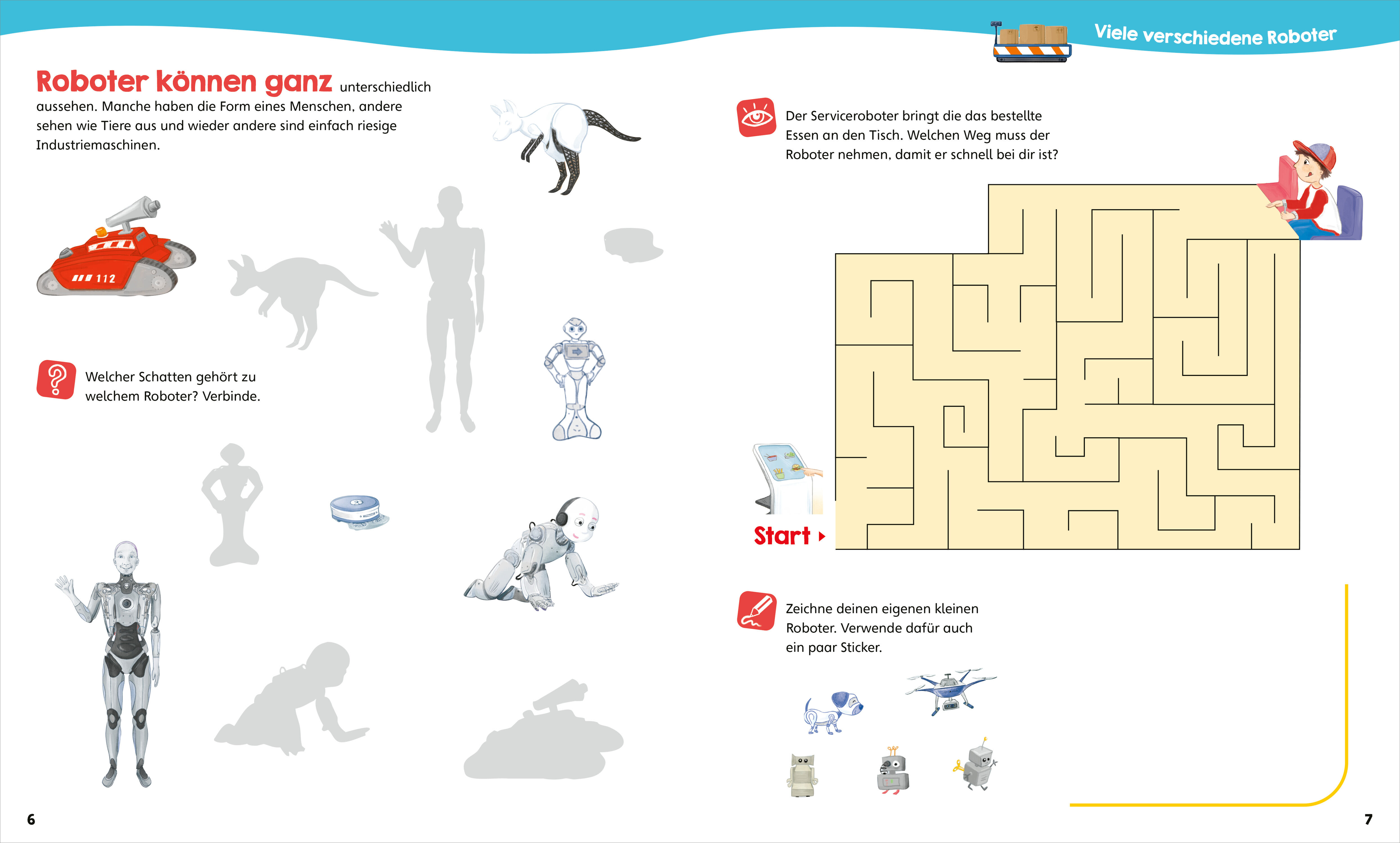Auf in die Welt der Roboter! Mit coolen Rätsel-, Mal- und Stickeraufgaben sorgt WAS IST WAS für abwechslungsreiche Beschäftigung mit Robotern. Ein Sicherheitsroboter muss zum Ziel. Aber wie ist der Weg? Welcher Roboter kommt an welchem Arbeitsplatz zum Einsatz...
