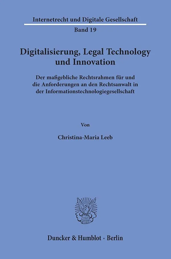Die Arbeit leitet aus einem bewusst breit gewählten Ansatzpunkt heraus ein gerade auch auf grundlegende, rechtstheoretische Überlegungen gestütztes Anforderungsprofil für die Anwaltschaft in der gegenwärtigen Informationstechnologiegesellschaft her. Konkret we...