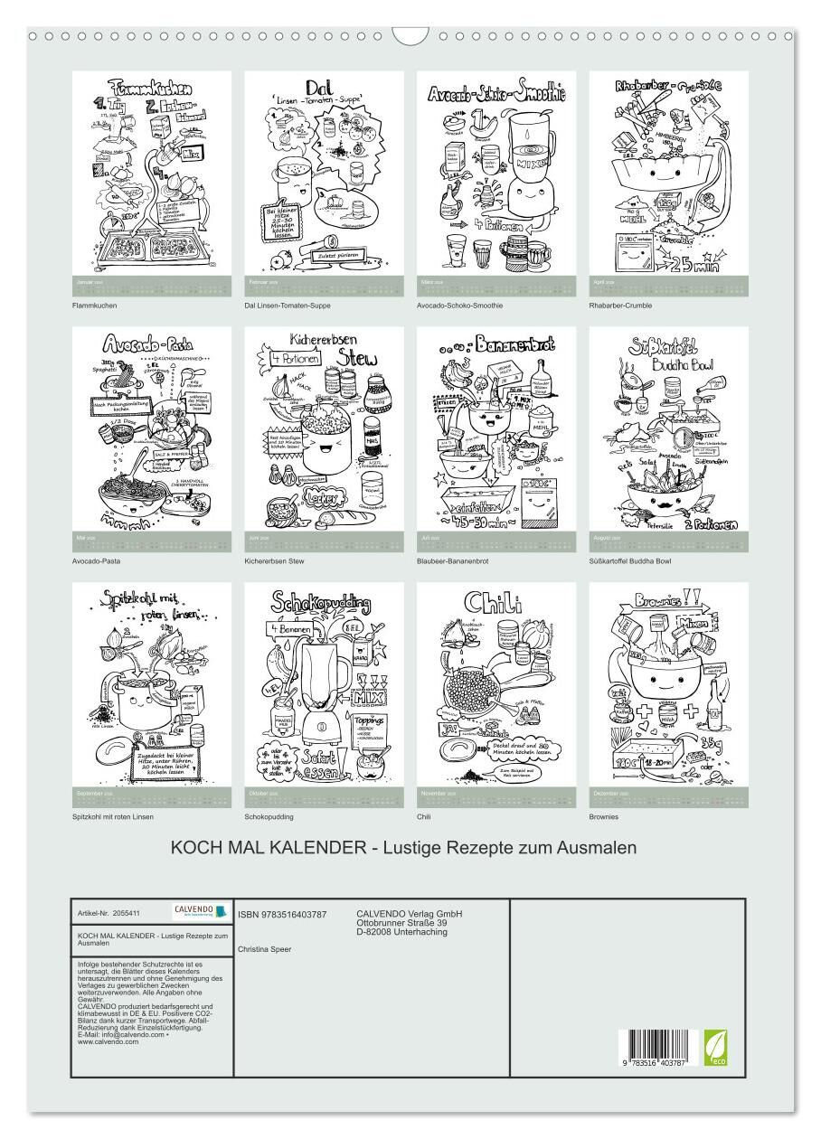 KOCH MAL KALENDER - Lustige Rezepte zum Ausmalen (Wandkalender 2026 DIN A2 hoch), CALVENDO Monatskalender