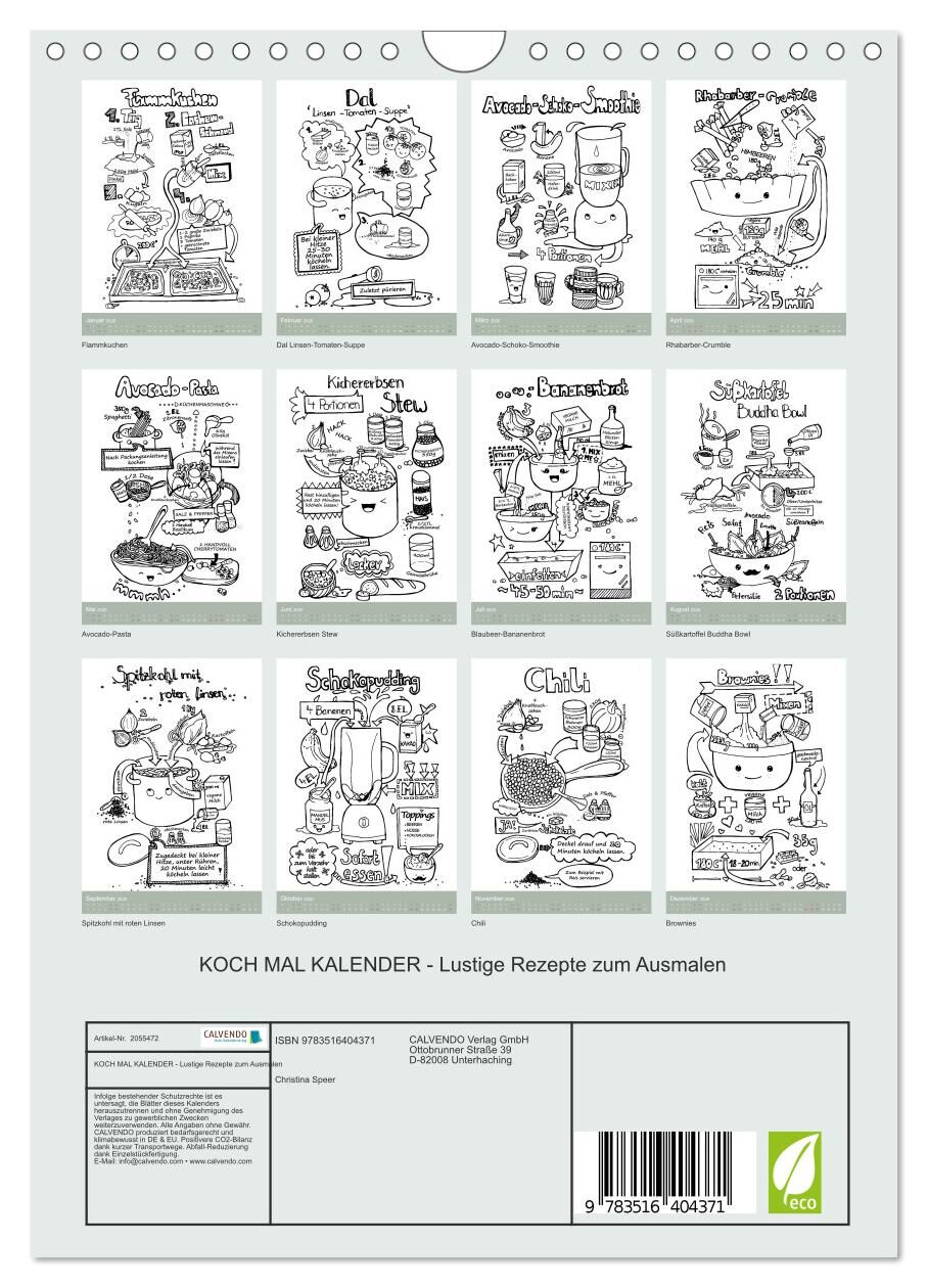KOCH MAL KALENDER - Lustige Rezepte zum Ausmalen (Wandkalender 2026 DIN A4 hoch), CALVENDO Monatskalender