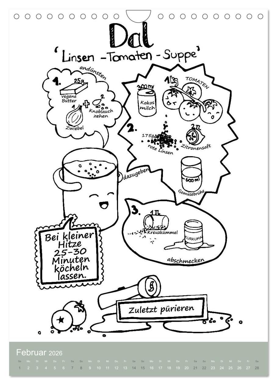 Mit diesem Kalender kannst du nicht nur herrliche Gerichte kreieren, sondern auch deiner künstlerischen Ader freien lauf lassen. Wenn du magst, male die Rezept-Illustrationen einfach aus und entspanne dich! Das Buch zum Kalender findest du unter: www.kochmalbu...