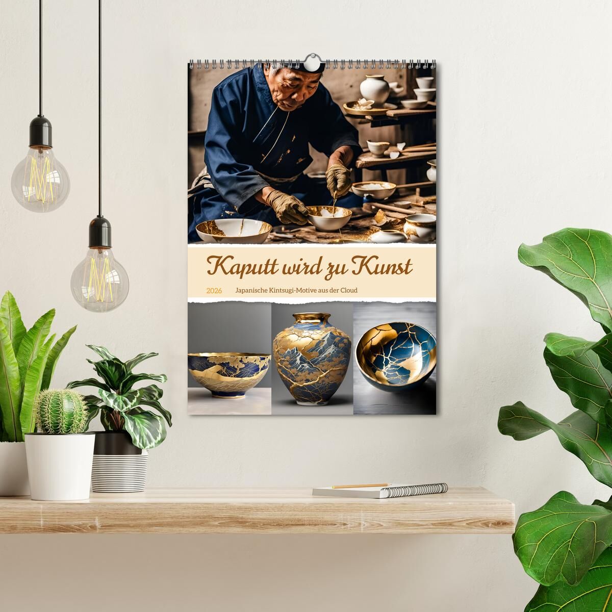 Dieser qualitativ hochwertige Kalender gehört zur exklusiven CALVENDO Gold-Edition. Entdecken Sie die Schönheit der Kintsugi-Kunst, die aus den Wolken der künstlichen Intelligenz (KI) geboren wurde. Unser Wandkalender 'Kaputt wird zu Kunst' präsentiert zwölf f...
