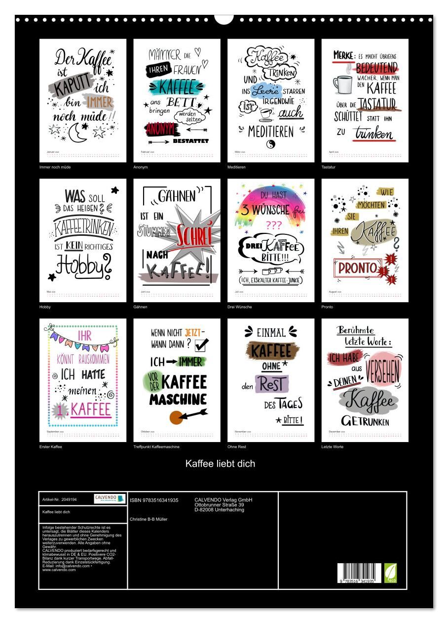 Kaffee liebt dich (Wandkalender 2026 DIN A2 hoch), CALVENDO Monatskalender