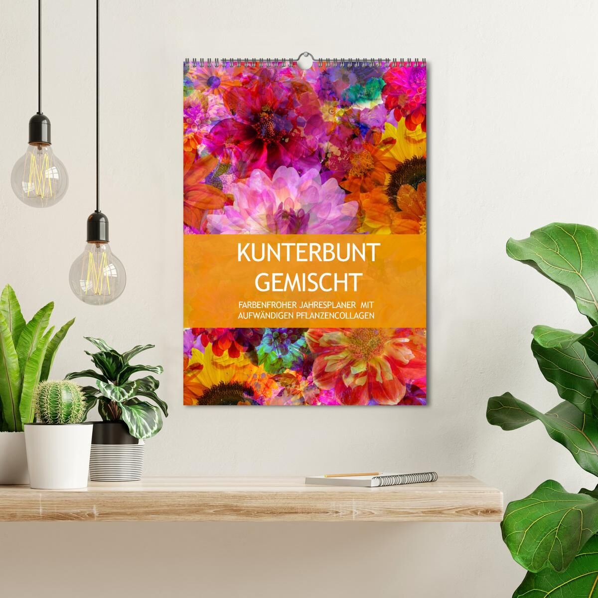 Kunterbunt gemischt - Kunterbunt gemischt - Farbenfroher Jahresplaner mit aufwändigen Pflanzencollagen (Wandkalender 2026 DIN A3 hoch), CALVENDO Monatskalender