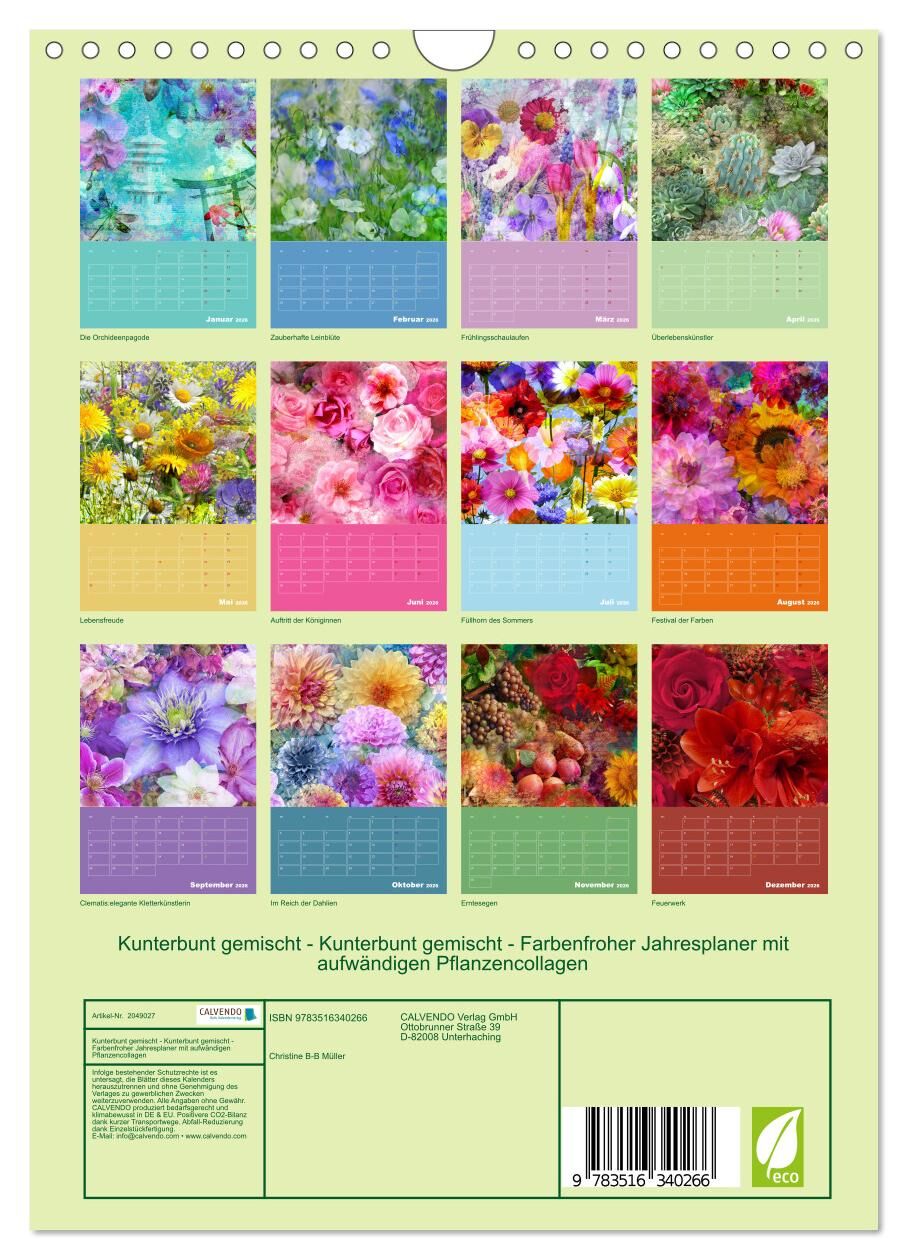 Dieser Kalender mit seinen fantasievollen Pflanzencollagen ist ein durch und durch farbenfroher Blickfang und fröhlicher Muntermacher. Als Planer bringt er obendrein seine nützliche Seite ins Spiel und sorgt dafür, dass Termine übersichtlich und ohne technisch...