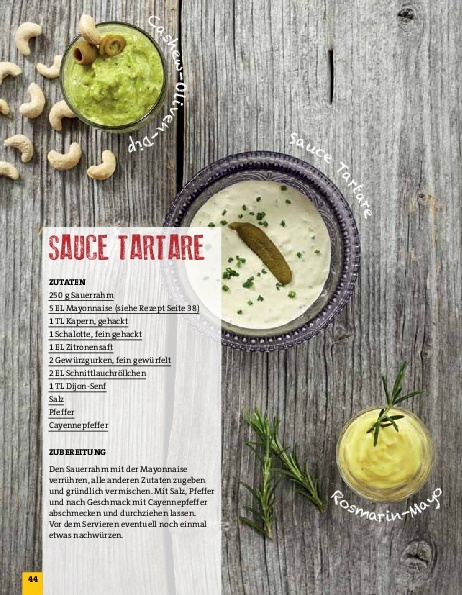 6 Kein Vorwort - ein Bekenntnis 8 Kartoffel ist nicht gleich Kartoffel ... Zum Frittieren geeignete Sorten . . . . . . . . . . . . . . . . . . . . . . 11 12 ... und Fett ist nicht gleich Fett Welches Fett oder Öl zu welchem Zweck . . . . . . . . . . . . . . . . . . . . 14 18 Anleitung zum Glücklichsein 20 Pommes-Architektur Klassisch . . . . . . . . . . . . . . . . . . . . . . . . . . . . . . 20 Schlank . . . . . . . . . . . . . . . . . . . . . . . . . . . . . . . 22 Rund . . . . . . . . . . . . . . . . . . . . . . . . . . . . . . . . . . 24 Aufgepoppt . . . . . . . . . . . . . . . . . . . . . . . . . . . 26 Dynamisch gewickelt . . . . . . . . . . . . . . . . . 28 Endlos . . . . . . . . . . . . . . . . . . . . . . . . . . . . . . . . 30 Schwungvoll verdreht . . . . . . . . . . . . . . . . . 32 Innovativ . . . . . . . . . . . . . . . . . . . . . . . . . . . . . 34 36 Saucen 38 Basics Ketchup für alle . . . . . . . . . . . . . . . . . . . . . . . 38 Mayonnaise . . . . . . . . . . . . . . . . . . . . . . . . . . . 38 39 Mayonnaisiges Rosa Beere. . . . . . . . . . . . . . . . . . . . . . . . . . . . . 39 Honig-Senf-Dip mit Zwiebeln. . . . . . . . . . 39 Paprika-Buttermilch-Dip. . . . . . . . . . . . . . . 41 Kalte Erbse . . . . . . . . . . . . . . . . . . . . . . . . . . . . 41 Sauce Béarnaise . . . . . . . . . . . . . . . . . . . . . . . 42 Curry-Mayonnaise . . . . . . . . . . . . . . . . . . . . 42 Ingwer-Mayonnaise . . . . . . . . . . . . . . . . . . 43 Aioli de Luxe . . . . . . . . . . . . . . . . . . . . . . . . . . 43 Sauce Tartare . . . . . . . . . . . . . . . . . . . . . . . . . 44 Rosmarin-Mayonnaise . . . . . . . . . . . . . . . . 45 Cashew-Oliven-Dip . . . . . . . . . . . . . . . . . . . . 45 46 Tomatiges Barbecue-Sauce . . . . . . . . . . . . . . . . . . . . . . . 46 Ketchup pikant . . . . . . . . . . . . . . . . . . . . . . . 47 Scharfe Tomaten-Sauce . . . . . . . . . . . . . . . 47 Hot-Dog-Sauce . . . . . . . . . . . . . . . . . . . . . . . . 67 48 Paprika Paprika-Dip . . . . . . . . . . . . . . . . . . . . . . . . . . . 48 Pikanter Paprika-Zwiebel-Dip . . . . . . . . . 48 Curry-Orangen-Ketchup . . . . . . . . . . . . . . . 49 50 Trendiges Schoko verkehrt . . . . . . . . . . . . . . . . . . . . . . . 51 Kichererbsen-Dip . . . . . . . . . . . . . . . . . . . . . . 51 Erdnuss-Koriander-Dip . . . . . . . . . . . . . . . . 51 Erdnuss pikant . . . . . . . . . . . . . . . . . . . . . . . . 52 Zoes Cajun-Sauce . . . . . . . . . . . . . . . . . . . . . . 53 Curry-Ananas-Dip . . . . . . . . . . . . . . . . . . . . . 53 Habanero-Schaum . . . . . . . . . . . . . . . . . . . . 54 Feigen-Dip . . . . . . . . . . . . . . . . . . . . . . . . . . . . 54 Fruchtige Erdnuss-Sauce . . . . . . . . . . . . . . . 54 Süßkartoffel royale . . . . . . . . . . . . . . . . . . . . 55 Sauce Poutine . . . . . . . . . . . . . . . . . . . . . . . . . 55 56 Salze 58 Rezepte Überbackene Pommes . . . . . . . . . . . . . . . . . 58 Überbackener Gyros- Pommes-Auflauf . . . . . . . . . . . . . . . . . . . . . . 60 Fladenbrot mit Pommes . . . . . . . . . . . . . . . 62 Pommes con Chili . . . . . . . . . . . . . . . . . . . . . 64 Pommes Burger . . . . . . . . . . . . . . . . . . . . . . . 66 Sesam öffne dich ... . . . . . . . . . . . . . . . . . . . 68 Strohkartoffeln . . . . . . . . . . . . . . . . . . . . . . . . 70 Belgische Pommes frites mit Thymian und Parmesan . . . . . . . . . . . . . . . 72 74 Gemüse Süßkartoffel-Pommes . . . . . . . . . . . . . . . . . 76 Zucchini-Pommes . . . . . . . . . . . . . . . . . . . . . 78 Sellerie-Pommes . . . . . . . . . . . . . . . . . . . . . . 78 79 Süsses Süße Pommes . . . . . . . . . . . . . . . . . . . . . . . . . 79 Fastnachts-Pommes mit Dörrobst . . . . . . . . . . . . . . . . . . . . . . . . . . 79