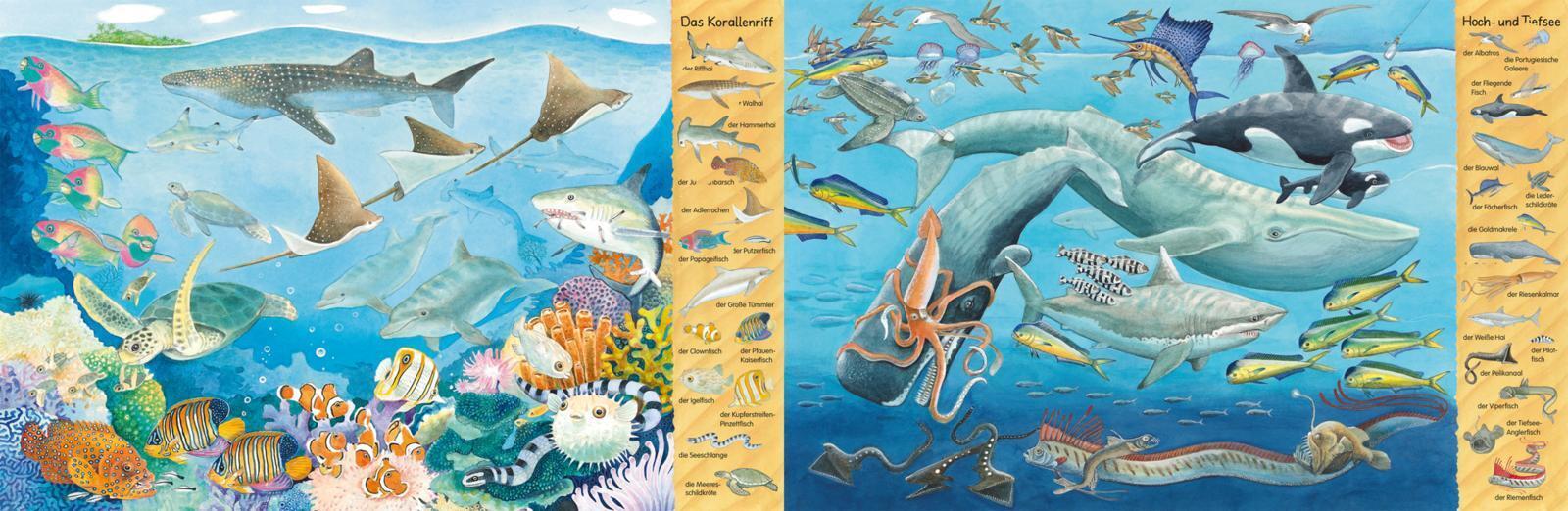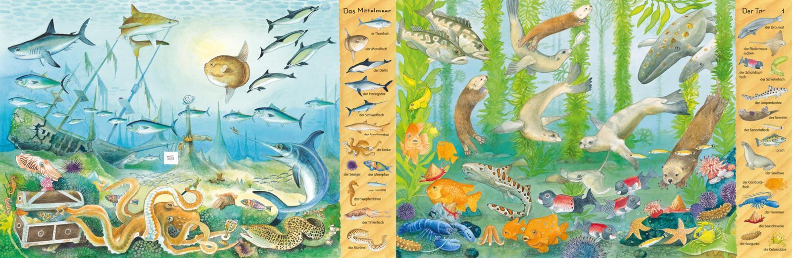 Keine Altersbeschränkung Großes Wimmelbuch rund um das Meer und alle Meerestiere für Kinder ab 3 Jahren mit zahlreichen Einzelabbildungen und Suchaufgaben! Welche Fische tummeln sich in der Nordsee und der Ostsee? Wie sieht der Meeresuntergrund im Mittelmeer a...