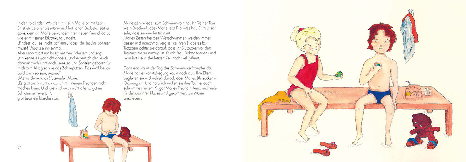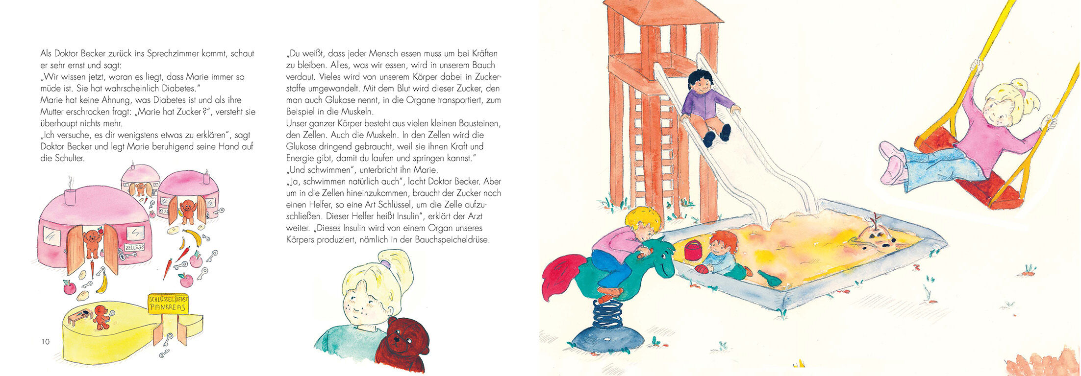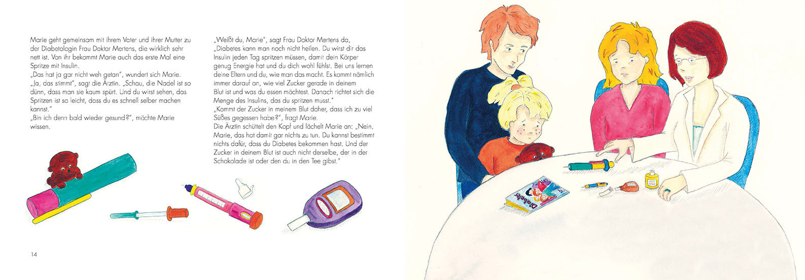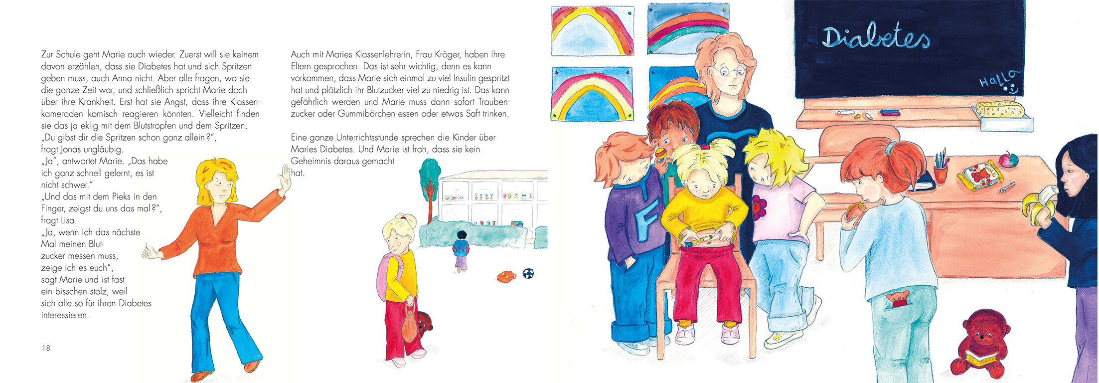 Marie ist ungewohnt oft müde und hat viel mehr Durst als früher. Eine Untersuchung beim Kinderarzt ist nötig. Die Diagnose lautet: Diabetes Typ 1. Die kleine Marie lernt, was sich in ihrem Alltag ändert und was nicht. Auch ihre Eltern, die Lehrerin, die Kinder...