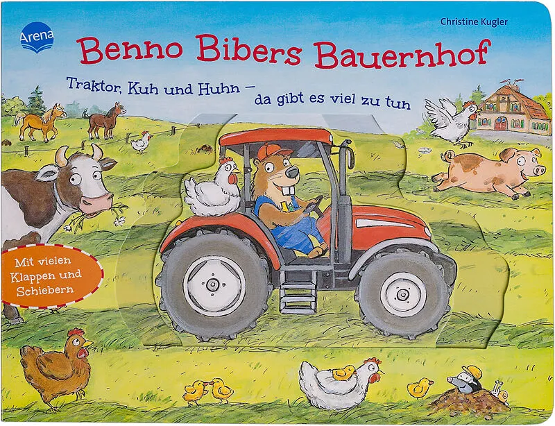 Kugler, Christine: Benno Biber - Benno Bibers Bauernhof - Traktor, Kuh und Huhn - da gibt es viel zu tun Ein Pappbilderbuch ab 2 mit Lieblingsheld: Benno Biber auf dem Bauernhof ! Traktor fahren mit dem Schieber , mit Klappe in den Kuhstall schauen - hier gibt...
