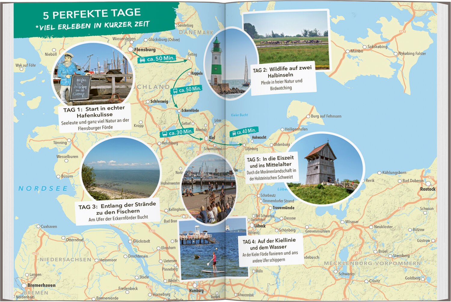 Mit dem MARCO POLO OUTDOOR GUIDE Reiseführer Ostseeküste Schleswig-Holstein idyllische Küstenlandschaften und charmante Hansestädte entdecken Auf dem Kapitänsweg durch Flensburg flanieren, zu wilden Pferden in der Geltinger Birk radeln, Hühnergötter an verste...