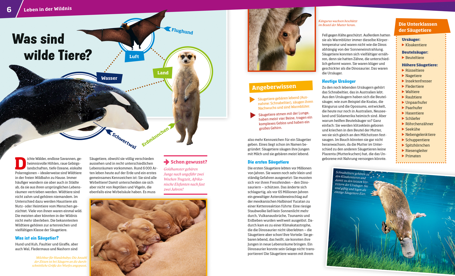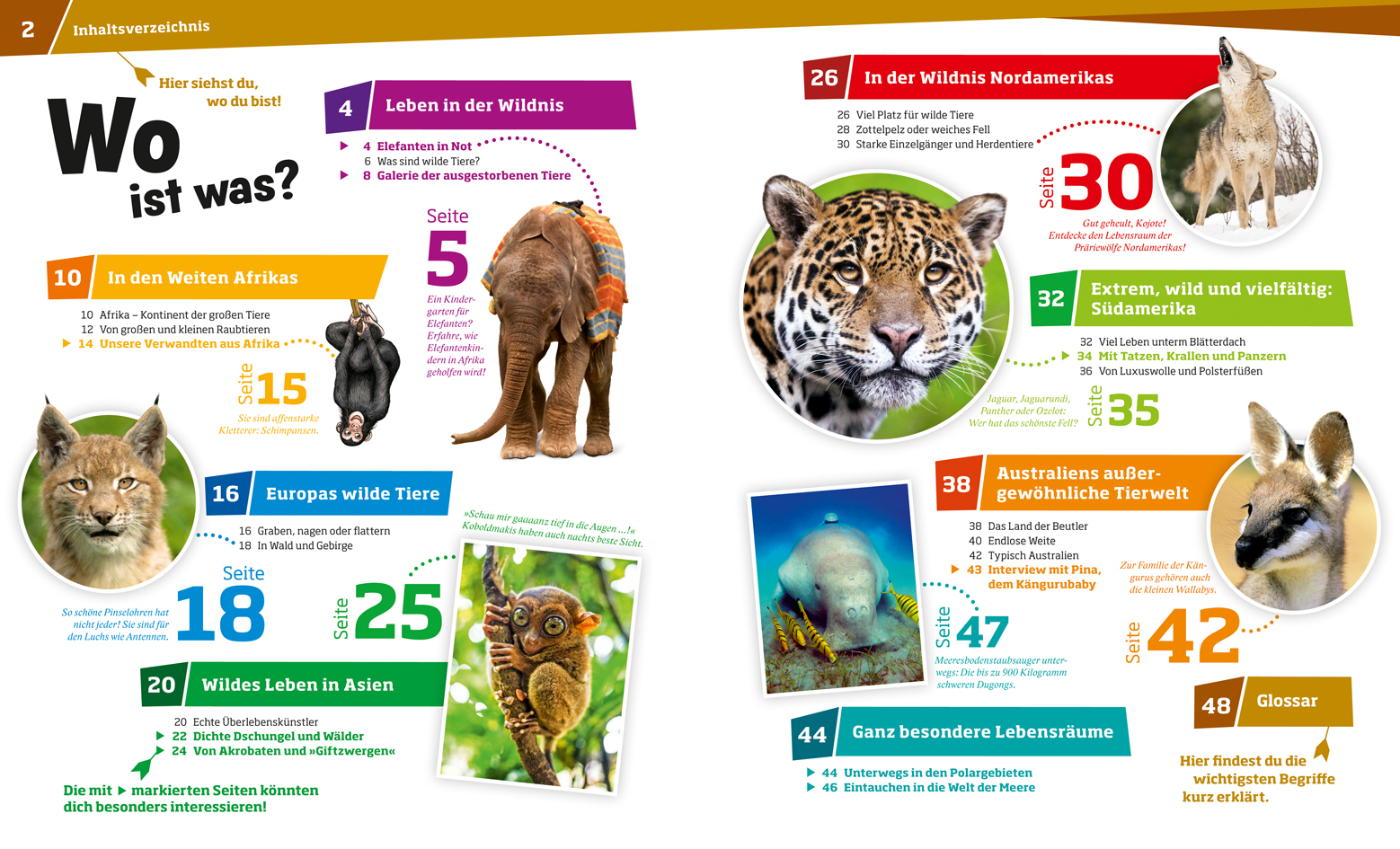 Wüsten und Steppen, Dschungel und Regenwald, Polargebiete und Ozeane - wilde Tiere leben rund um den Erdball. Lautlos schleicht der Leopard durch den dichten Dschungel Afrikas. Schaurig-schön klingt das Heulen der australischen Dingos. Und die Gibbons hangeln ...