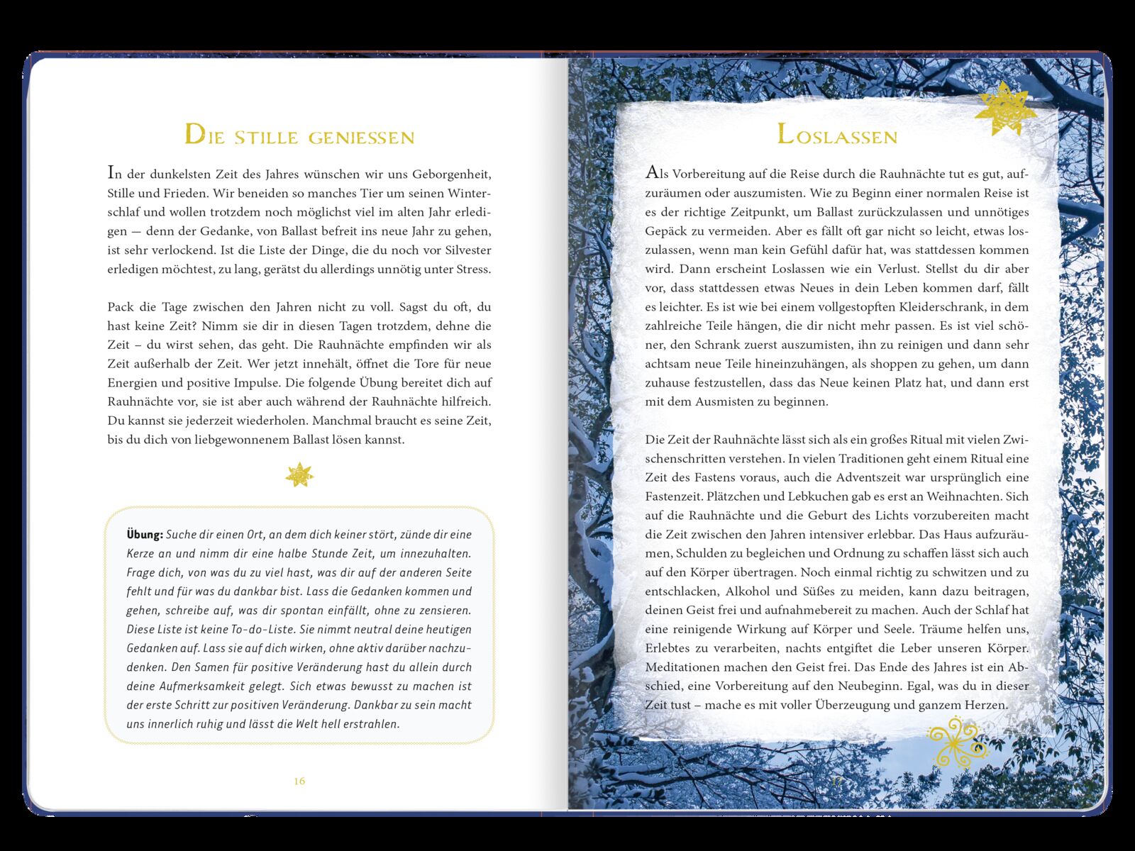 Erlebe die Magie der Rauhnächte mit diesem kreativen Journal Die Rauhnächte, die Tage zwischen Weihnachten und dem Dreikönigstag am 6. Januar, gelten seit jeher als geheimnisvoll und mystisch. Der alte Volksglaube sieht in den Rauhnächten eine Zeit der Vorber...
