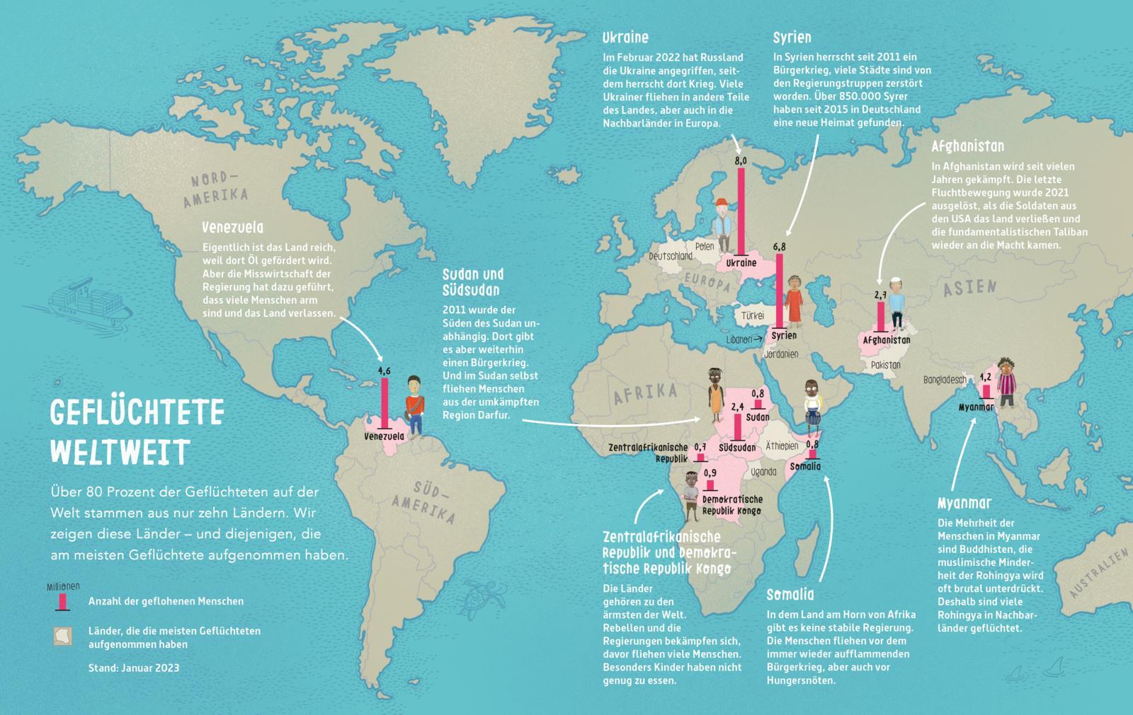 Ein Sachbuch über Geflüchtete, Fluchtursachen und Integration für Kinder ab 8 von den Jugendliteraturpreis-Gewinnerinnen Christoph Drösser und Nora Coenenberg. Fast jedes Kind kommt in der Schule in Kontakt mit geflüchteten Kindern, zum Beispiel aus der Ukrai...
