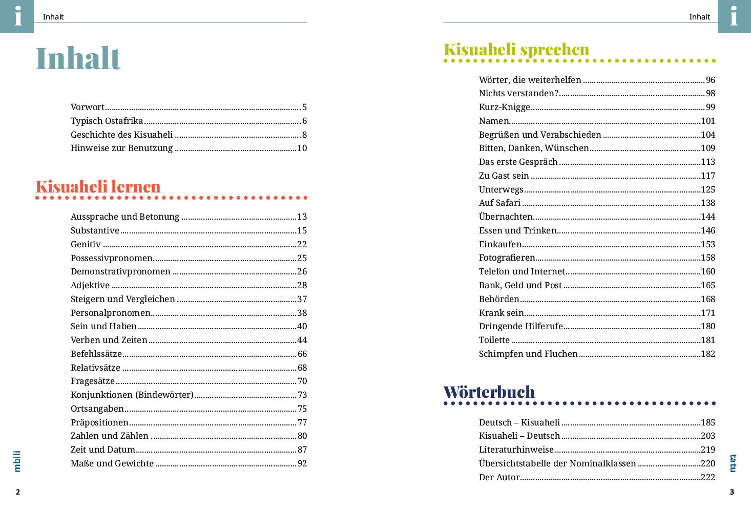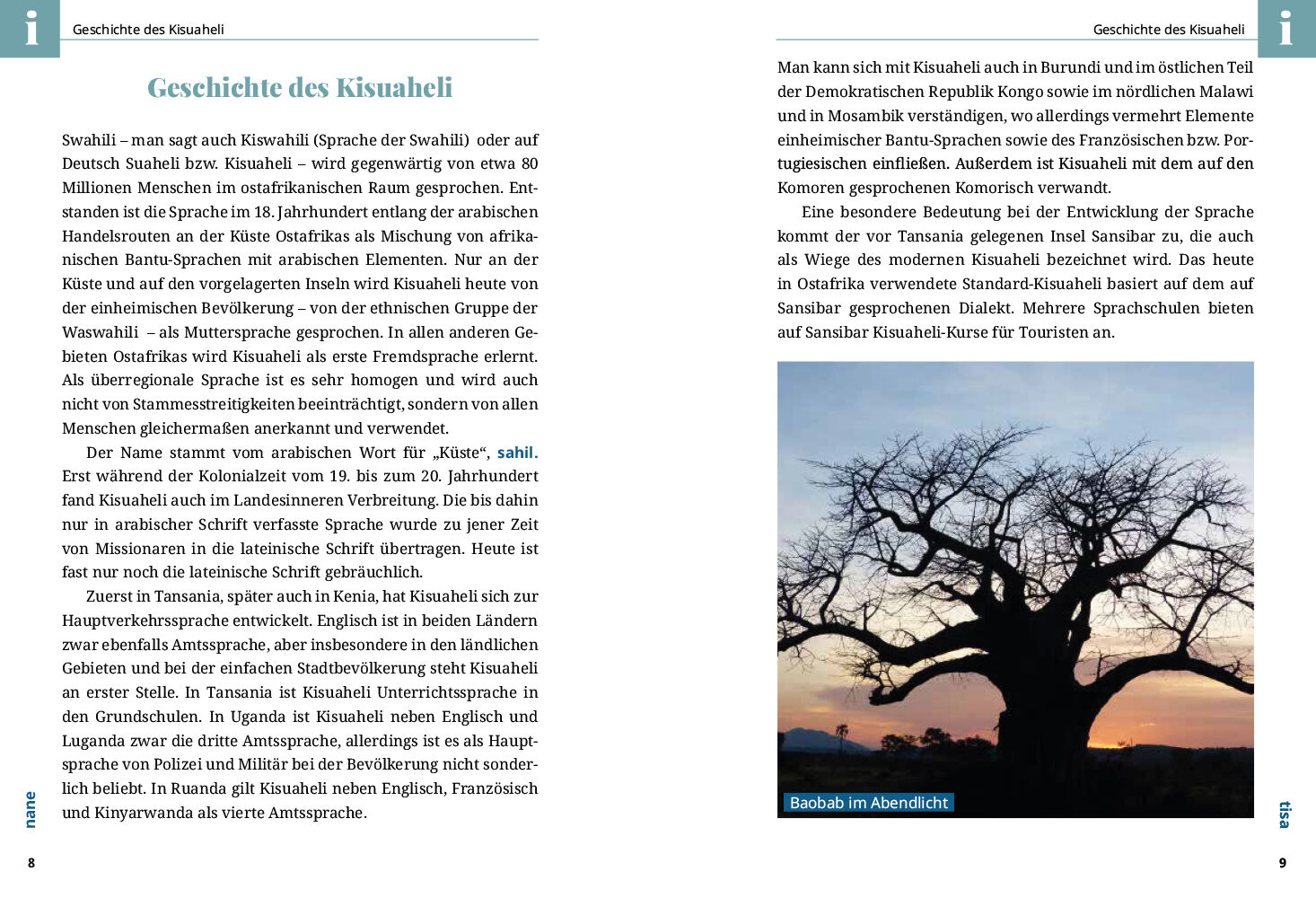 Kisuaheli (auch Swahili) wird gegenwärtig von ca. 40 Millionen Menschen im ostafrikanischen Raum gesprochen. Es ist die wichtigste Umgangssprache in Tansania (dort sogar wichtiger als Englisch), Kenia und Uganda, wird aber auch in Ruanda, Burundi und im östli...