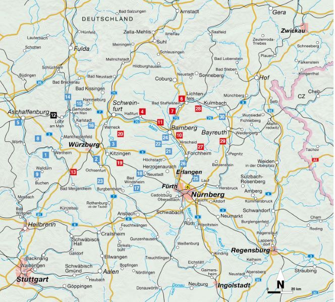 Main-Donau-Kanal, Mainschleife, Mainbogen, Rotmainquelle der Main ist allgegenwärtig auf den paradiesischen Radlstrecken in Mainfranken und der Fränkischen Schweiz. Und auch Nebenflüsse wie Tauber, Fränkische Saale und Regnitz sind von fantastischen Radwegen g...