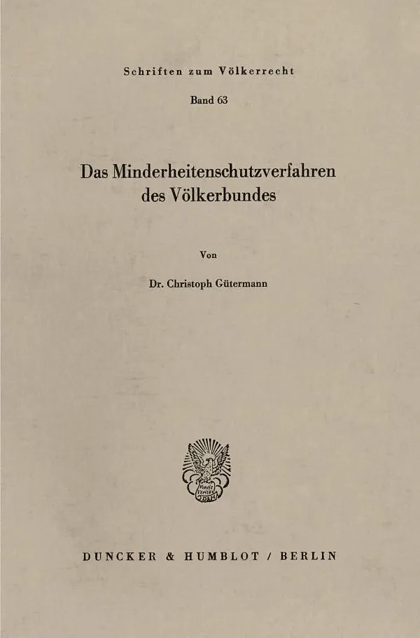 Das Minderheitenschutzverfahren des Völkerbundes.