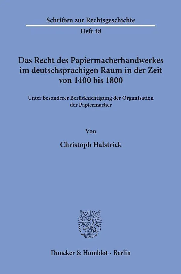 Das Recht des Papiermacherhandwerkes im deutschsprachigen Raum in der Zeit von 1400 bis 1800.