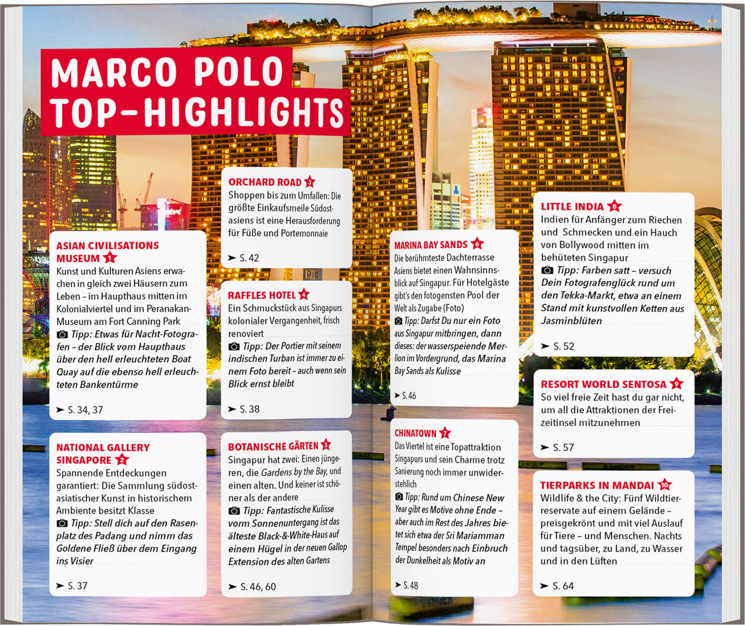 MARCO POLO Reiseführer Singapur Die Stadt, die sich immer neu erfindet Singapur ist vielfältig: Window Shopping auf der Orchard Road, wilde Tiere beobachten in Mandai, Luxus der Kolonialzeit genießen im Raffles Hotel all das ist möglich, ohne die Metropole zu...