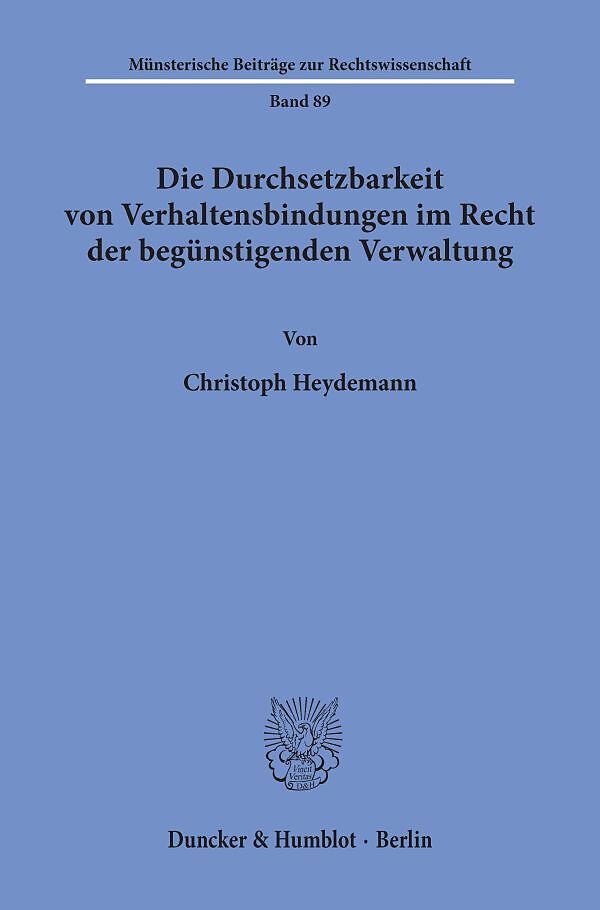 Die Durchsetzbarkeit von Verhaltensbindungen im Recht der begünstigenden Verwaltung.