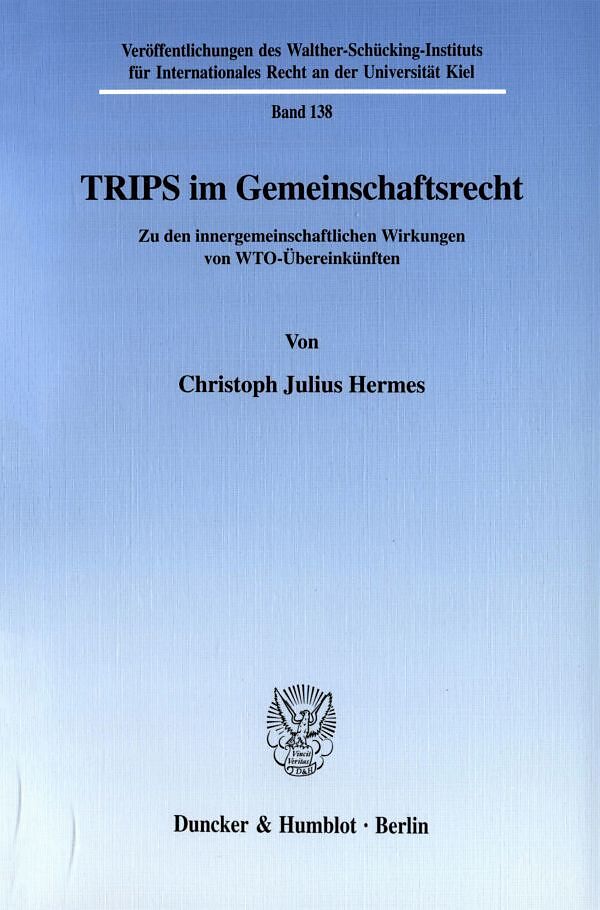Mit dem Agreement on Trade-Related Aspects of Intellectual Property Rights (TRIPS) wurde weltweit ein neuer Standard im internationalen Immaterialgüterrechtsschutz gesetzt. Die Europäische Gemeinschaft ist als WTO-Mitglied an die Bestimmungen des TRIPS gebunde...