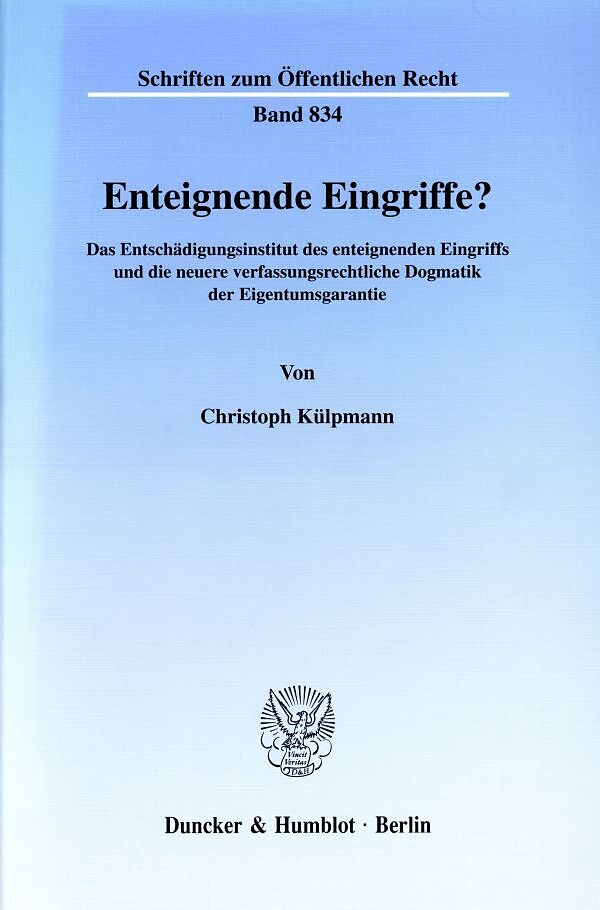 Das Recht der öffentlich-rechtlichen Ersatzleistungen befindet sich in einer Krise. Eine wesentliche Ursache der Krise ist die Vermengung von rechtmäßiger Enteignung mit der Haftung für hoheitlich begangenes Unrecht. Diese Vermengung führte zu den Rechtsfigure...