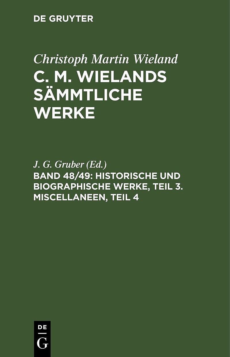 Christoph Martin Wieland: C. M. Wielands Sämmtliche Werke / Historische und biographische Werke, Teil 3. Miscellaneen, Teil 4