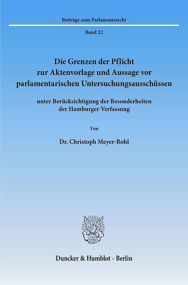 Die Grenzen der Pflicht zur Aktenvorlage und Aussage vor parlamentarischen Untersuchungsausschüssen