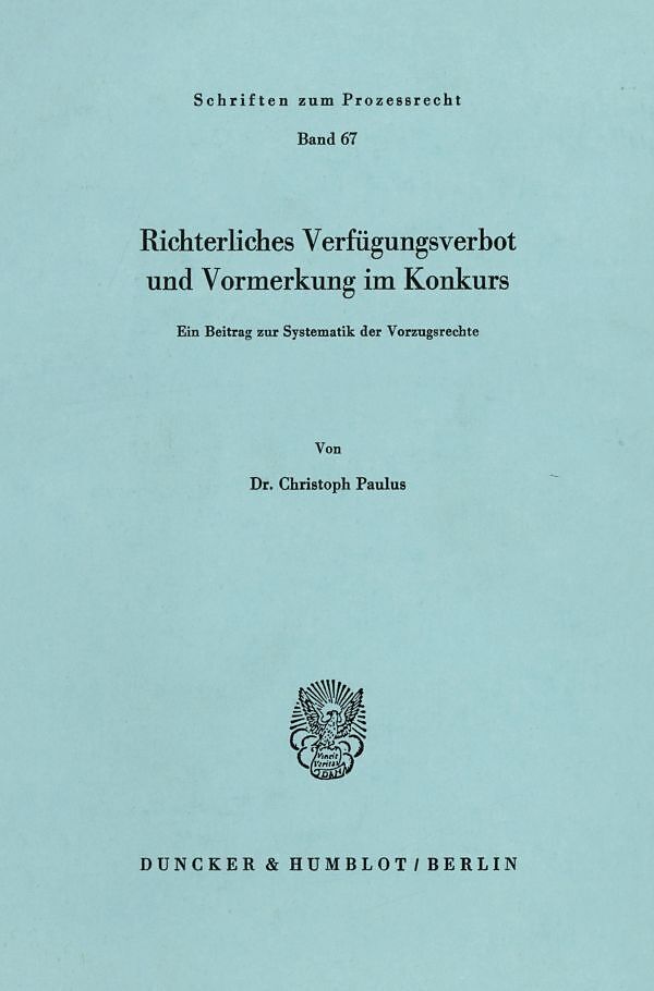 Richterliches Verfügungsverbot und Vormerkung im Konkurs.