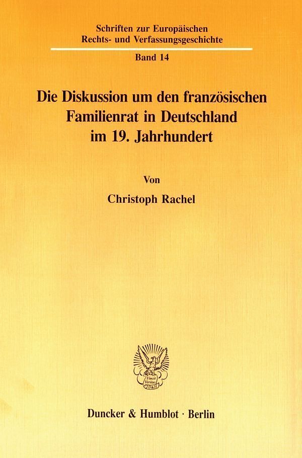 Zusammenfassung »Ungeachtet dieser Lücken hat Verf. in seiner kenntnisreichen und anregend geschriebenen Studie (vgl. insbesondere die 'Ergebnisse', S. 184ff.) mit der Geschichte des Familienrats in der Rheinbundzeit, in Rheinpreußen und in der preuß...