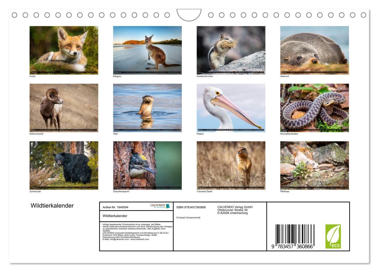 Wildtierkalender (Wandkalender 2026 DIN A4 quer), CALVENDO Monatskalender