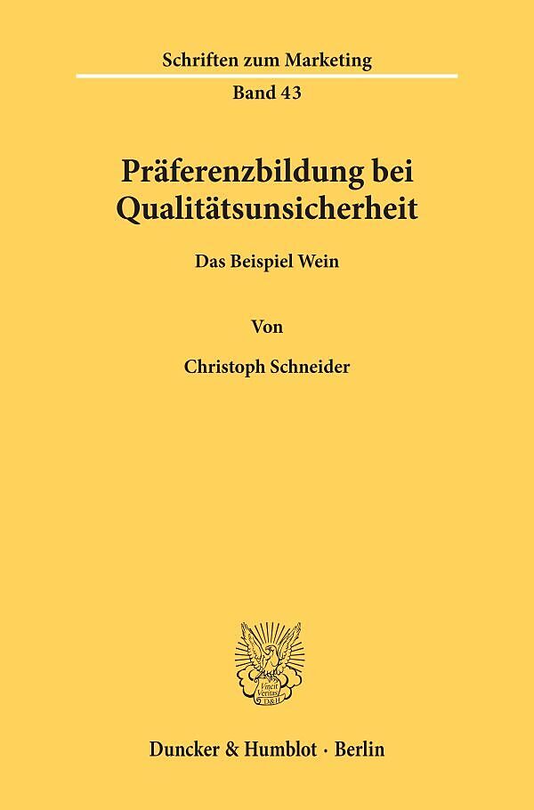 In der Kaufverhaltensforschung entsteht Präferenz für ein Produkt durch das Abwiegen aller Nutzen- und Kostenkomponenten gegenüber verschiedenen Konkurrenzprodukten. Können die Nutzenkomponenten vor dem Kauf nicht oder nur teilweise beurteilt werden, empfinden...